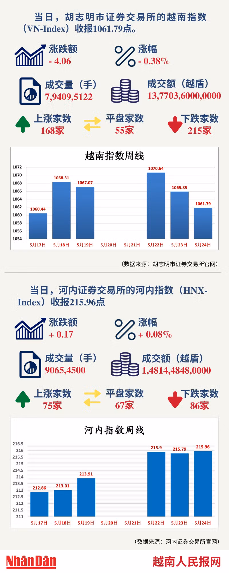 5月24日越南证券市场数据一览 【图表新闻】