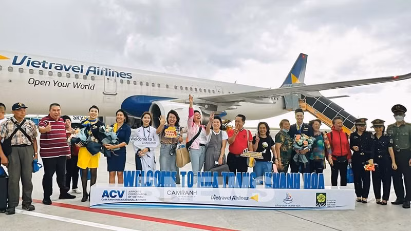 越游航空公司VU1337号航班于当地时间13时40分从澳门国际机场(MFM)起飞,于越南时间14时55分降落金兰国际机场(CXR),这是在受疫情影响各国加强旅游限制后迎接赴越体验新旅游产品的来自中国澳门的首个旅游团。这也是该航空公司继越南金兰-韩国大邱航线成功首航后的下一个系列包机航班。