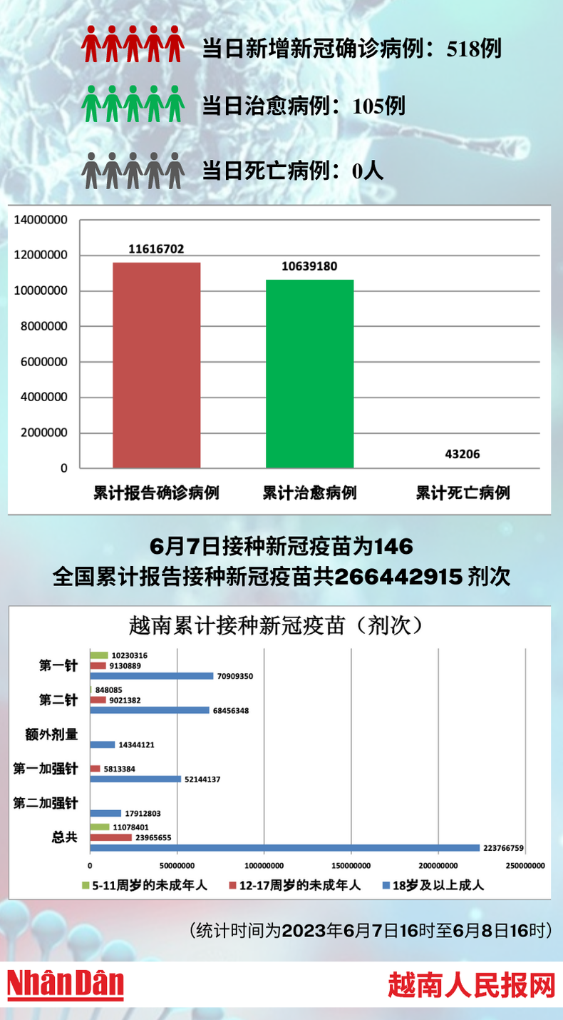 6月8日越南新增新冠确诊病例518例【图表新闻】