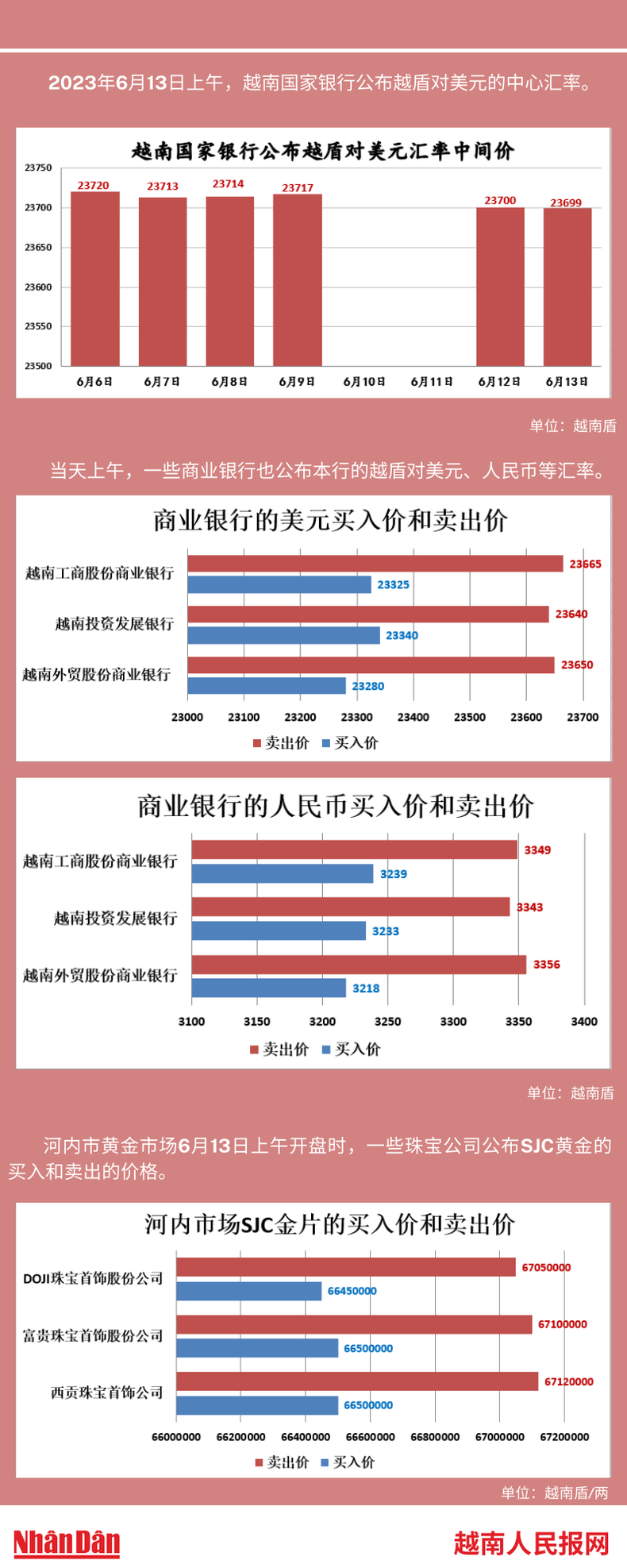 2023年6月12日上午,越南国家银行所公布的越盾对美元的中心汇率为23699。