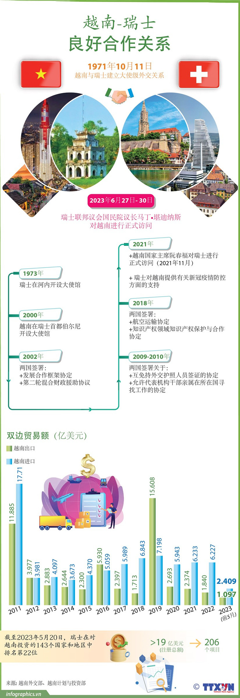越南与瑞士于1971年10月11日正式建立外交关系,从此以来两国合作关系不断得到巩固与发展。