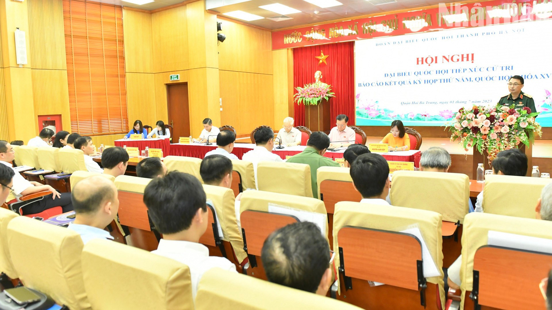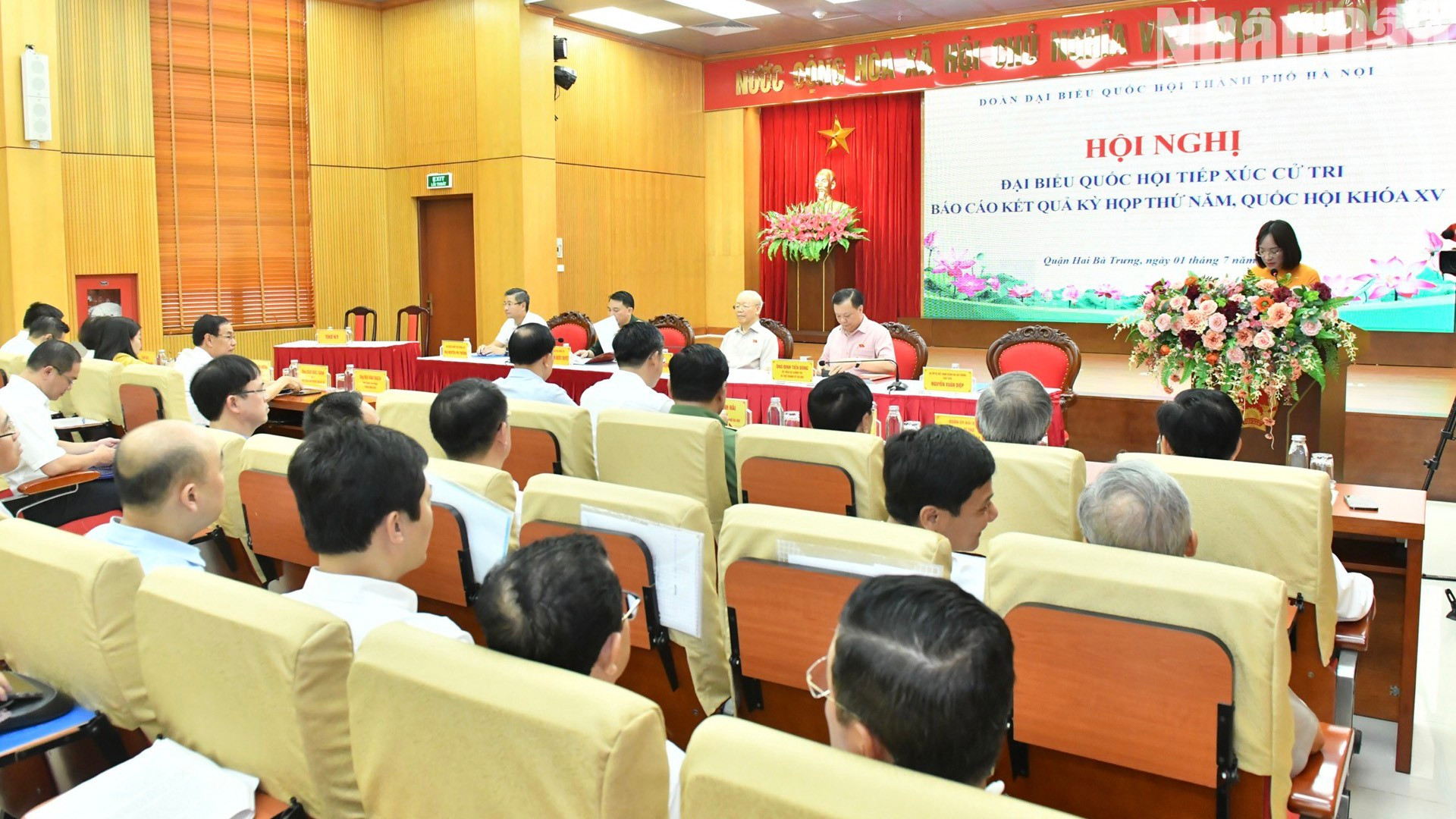 越共中央政治局委员、河内市委书记、市国会代表团团长丁进勇,河内市人民议会主席阮玉俊,党中央办公厅、总书记办公厅领导,河内市各部门、单位领导在座。