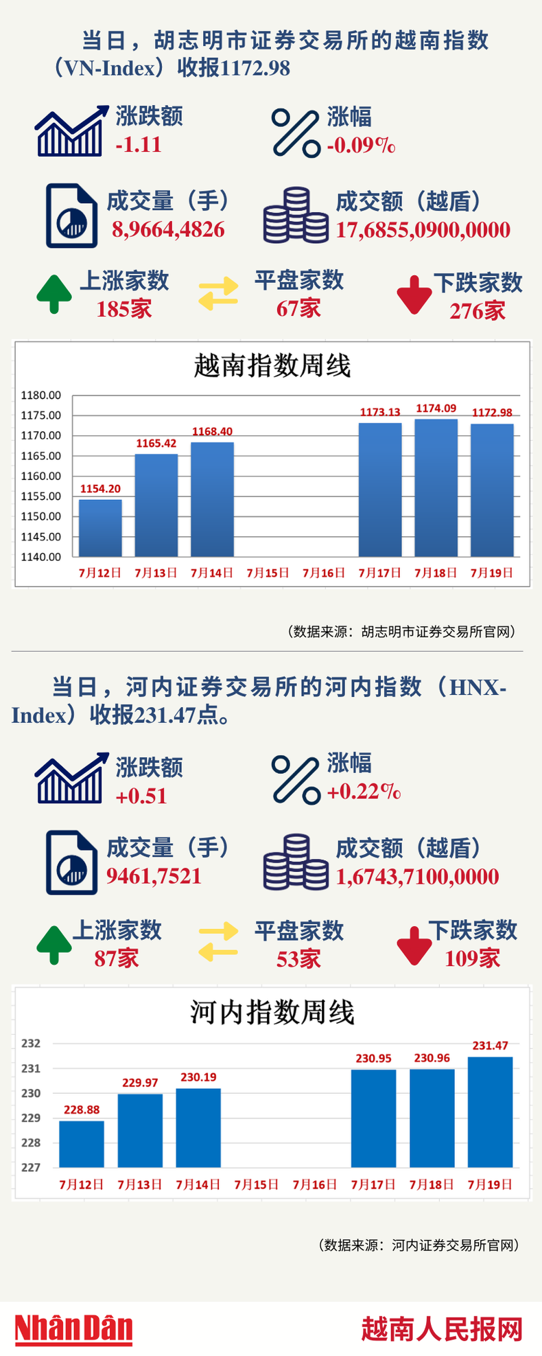 2023年7月19日越南证券市场数据一览【图表新闻】