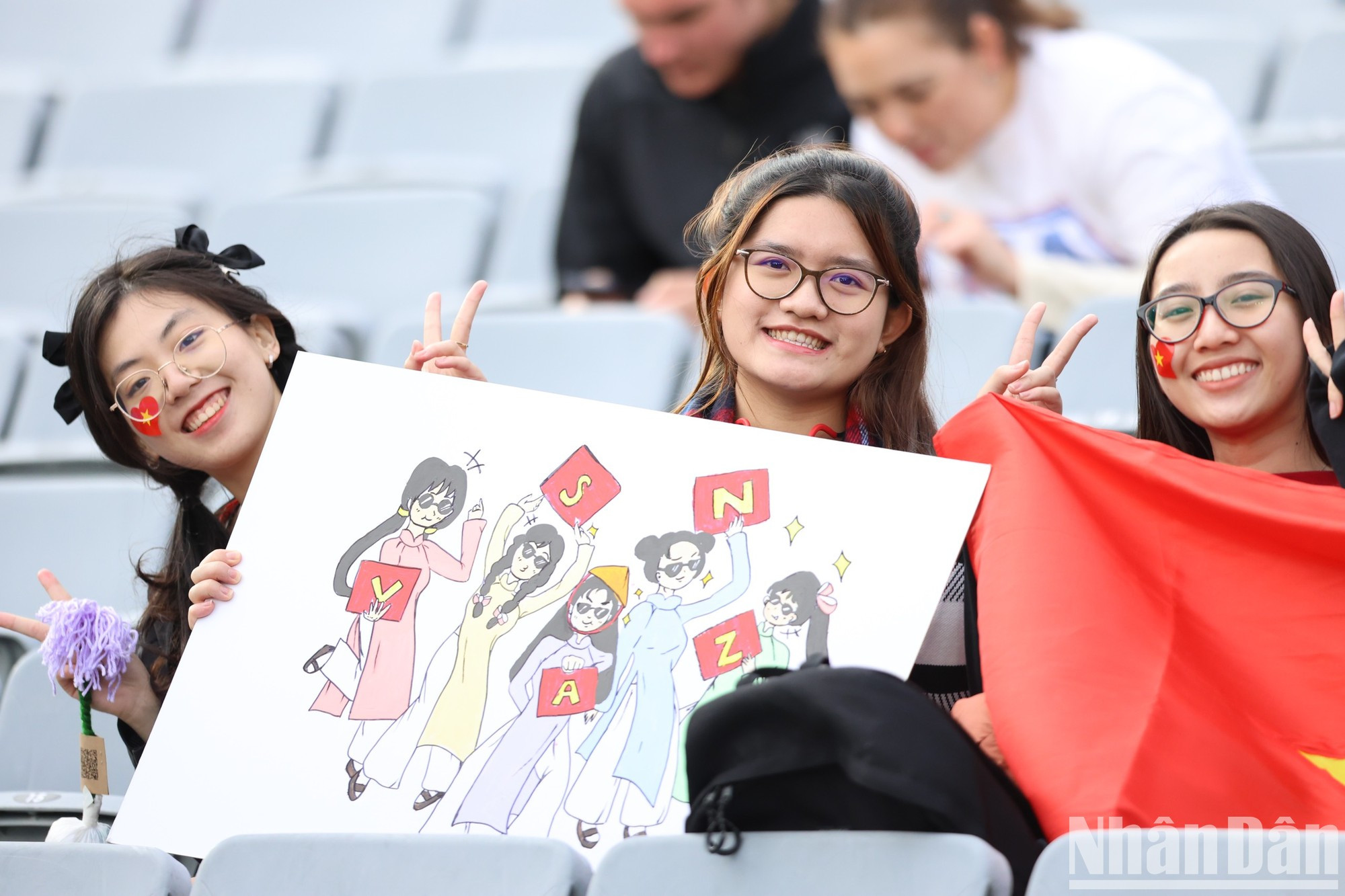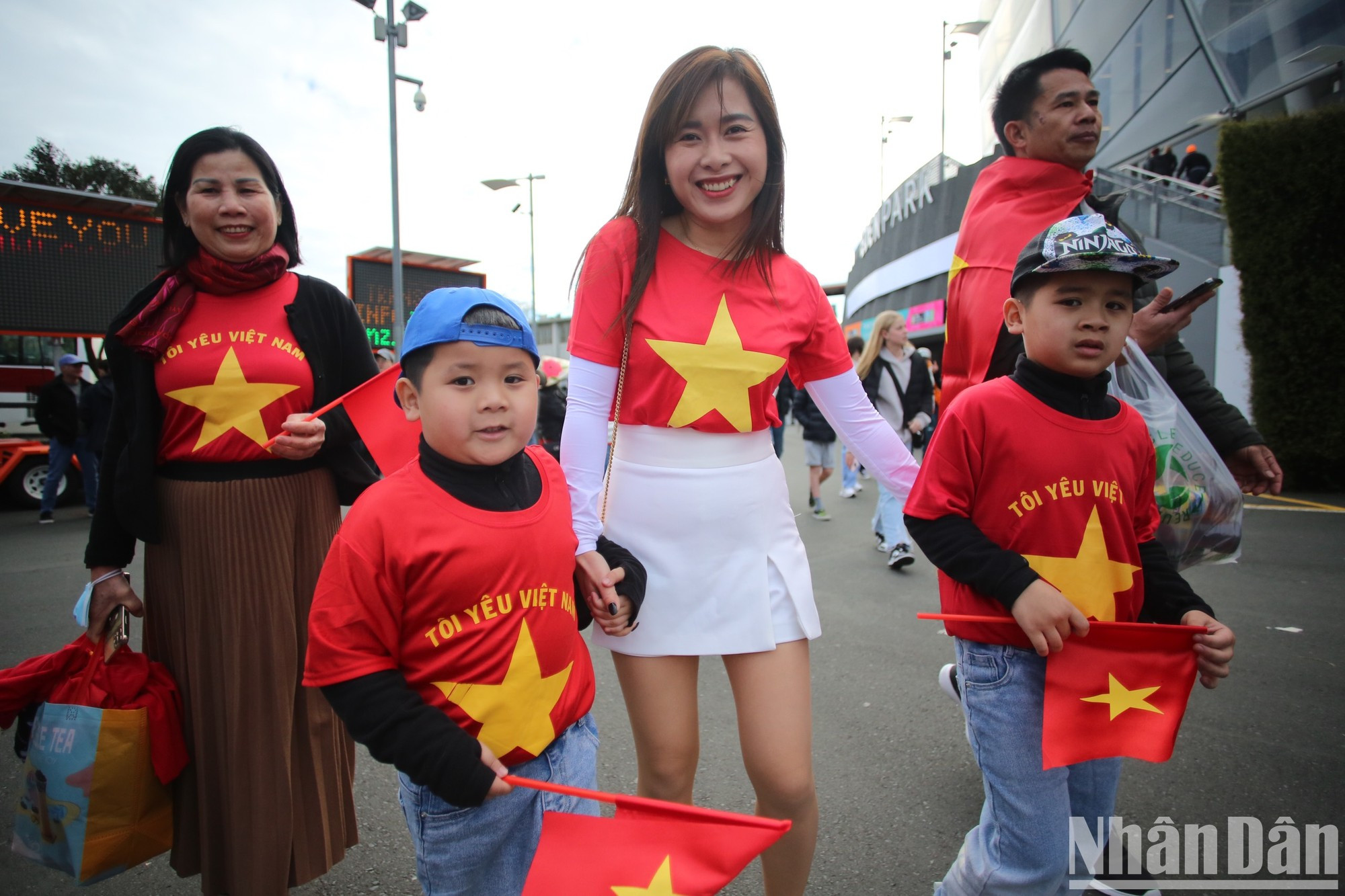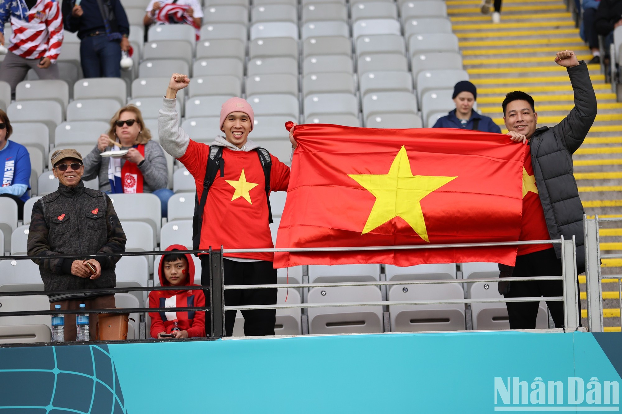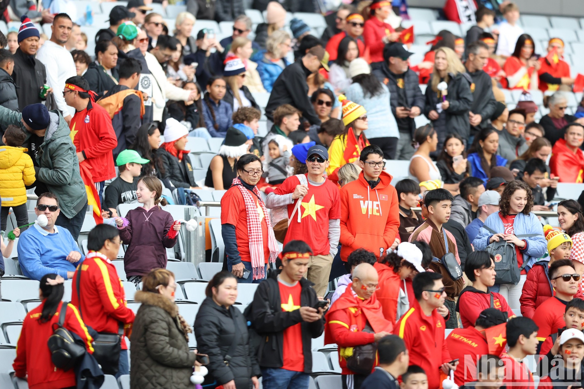 为了给越南女足迎战非常强劲的对手美国女足加油,众多球迷把熟悉的红色带到了伊甸公园球场。