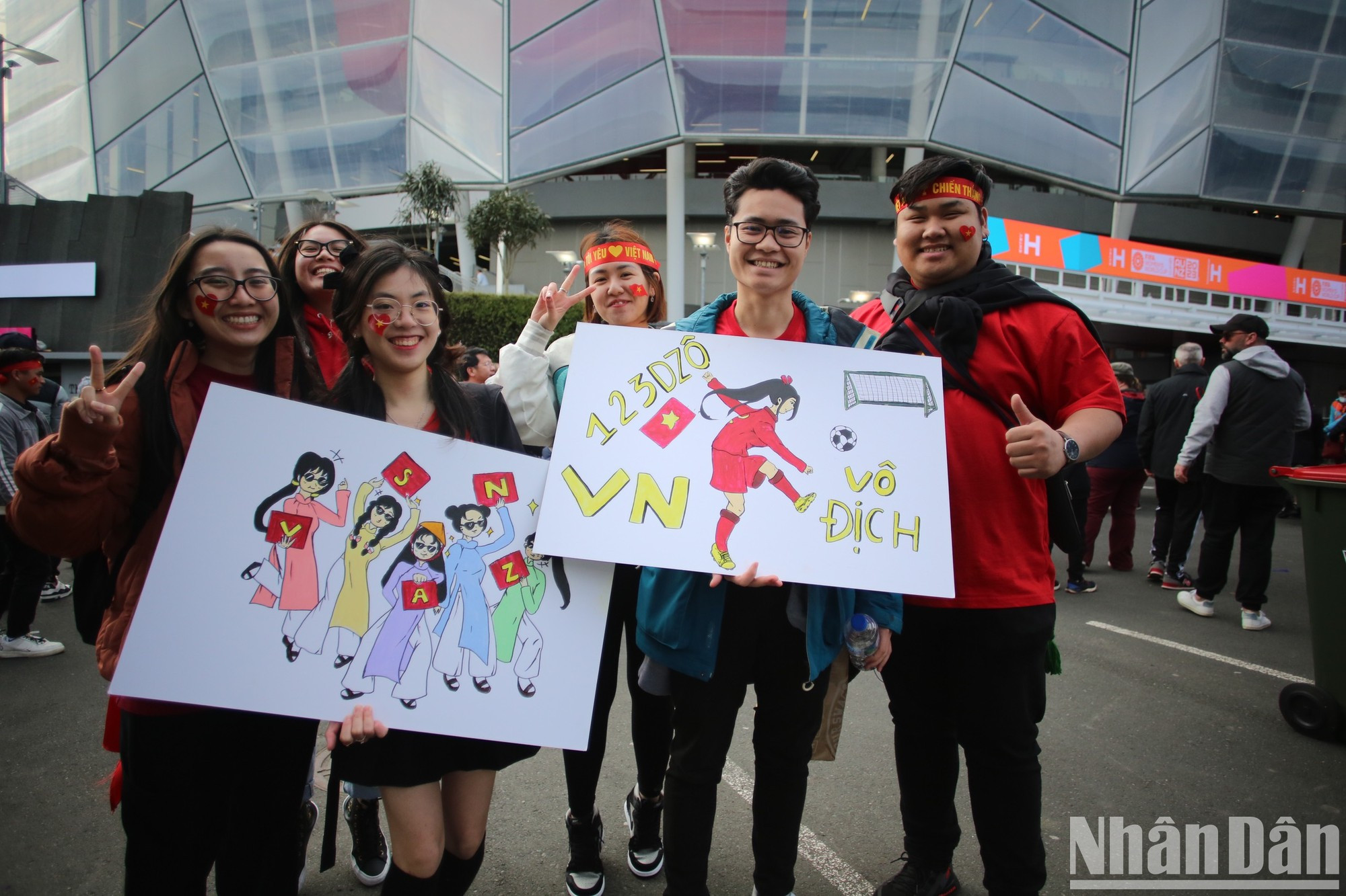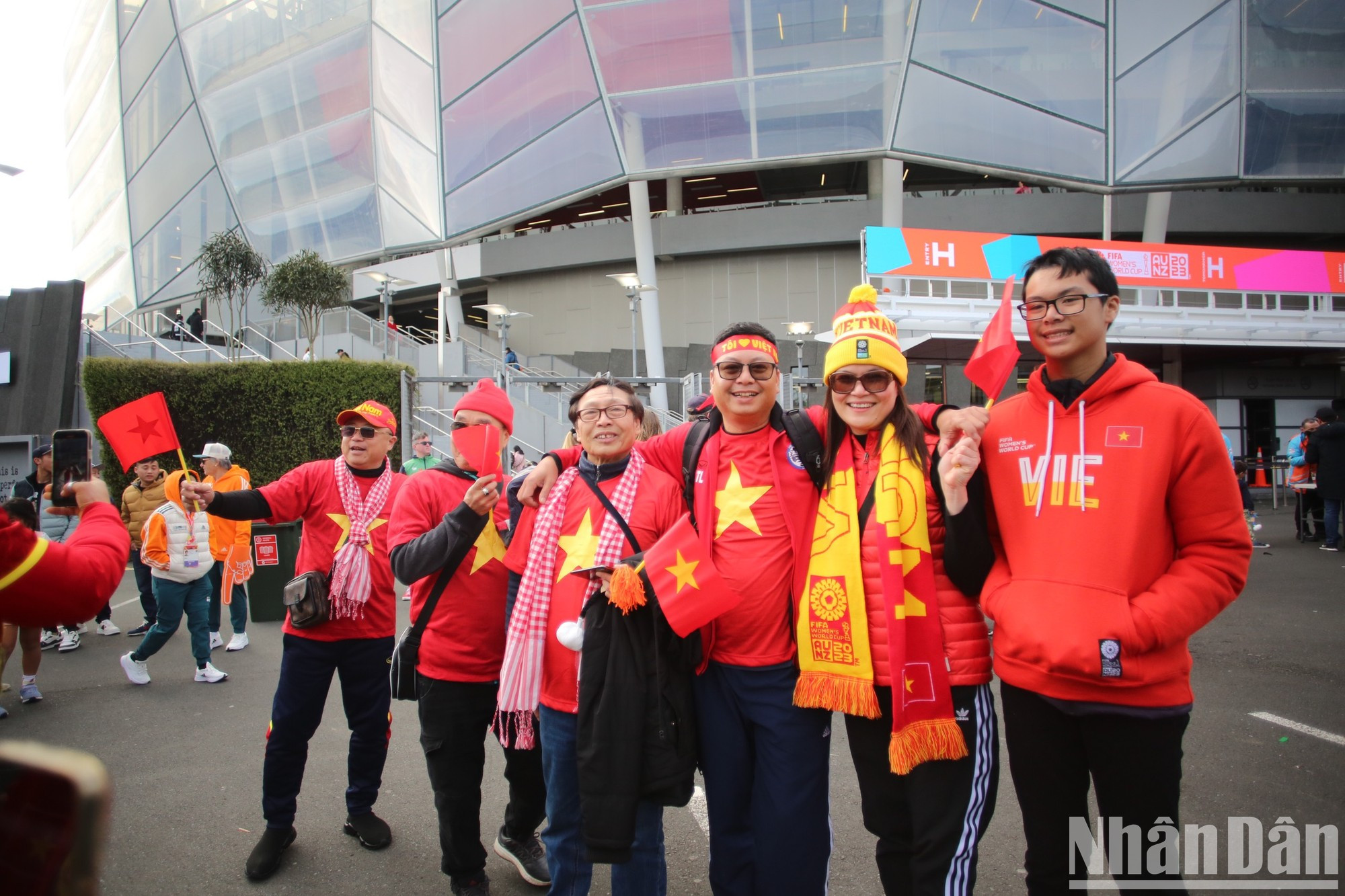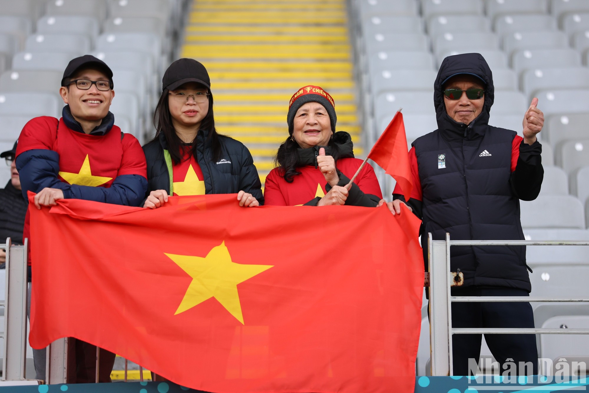 为了给越南女足迎战非常强劲的对手美国女足加油,众多球迷把熟悉的红色带到了伊甸公园球场。