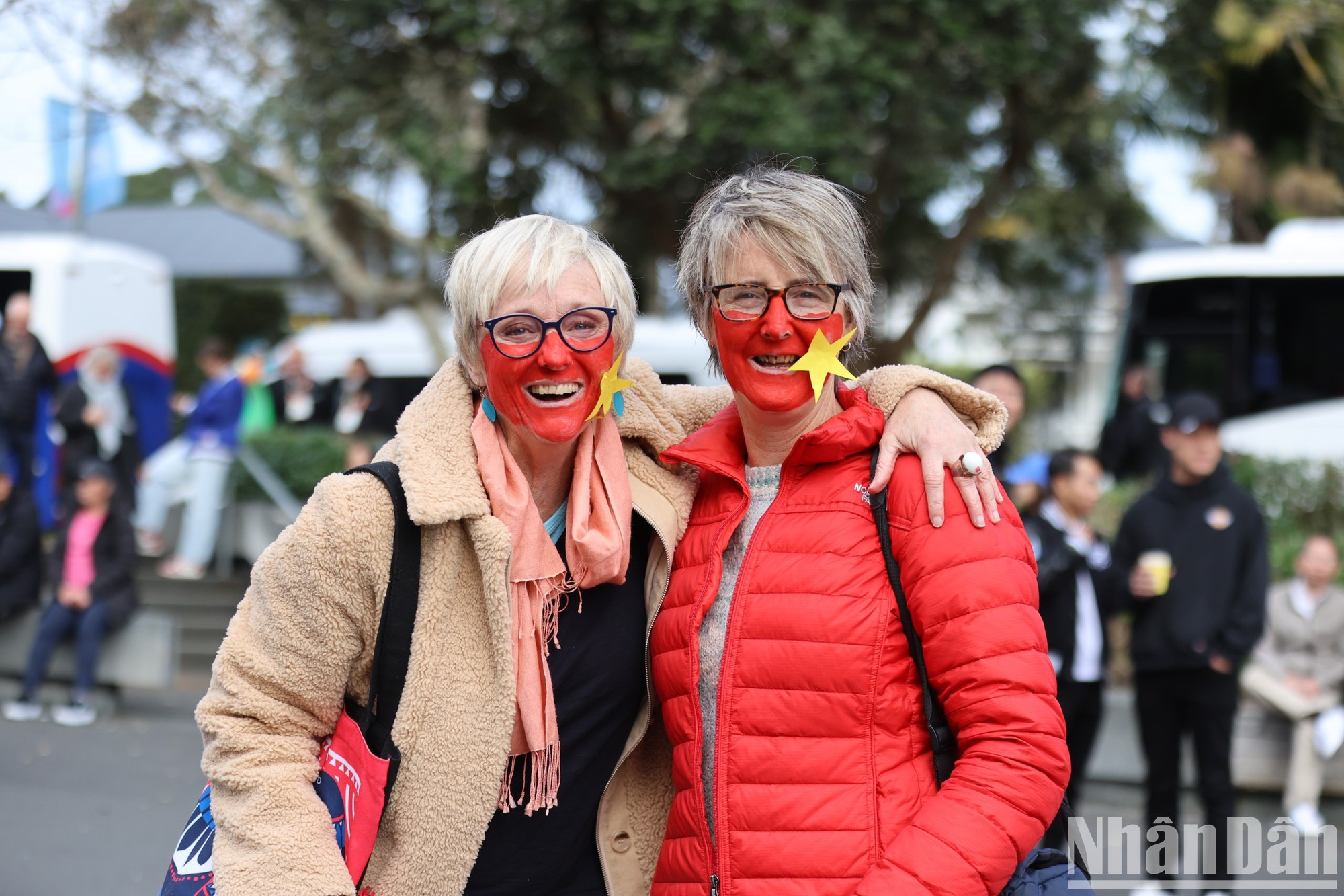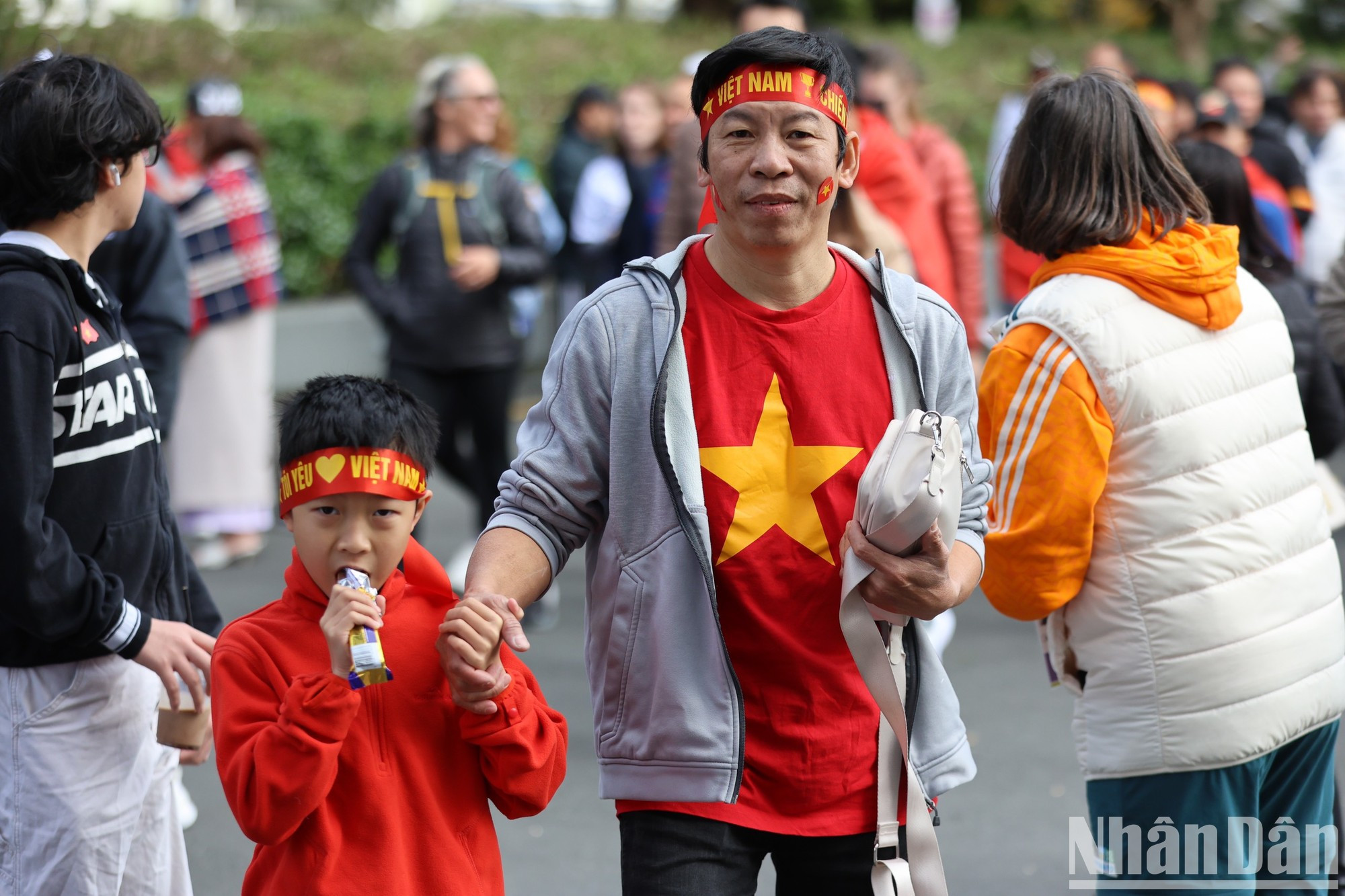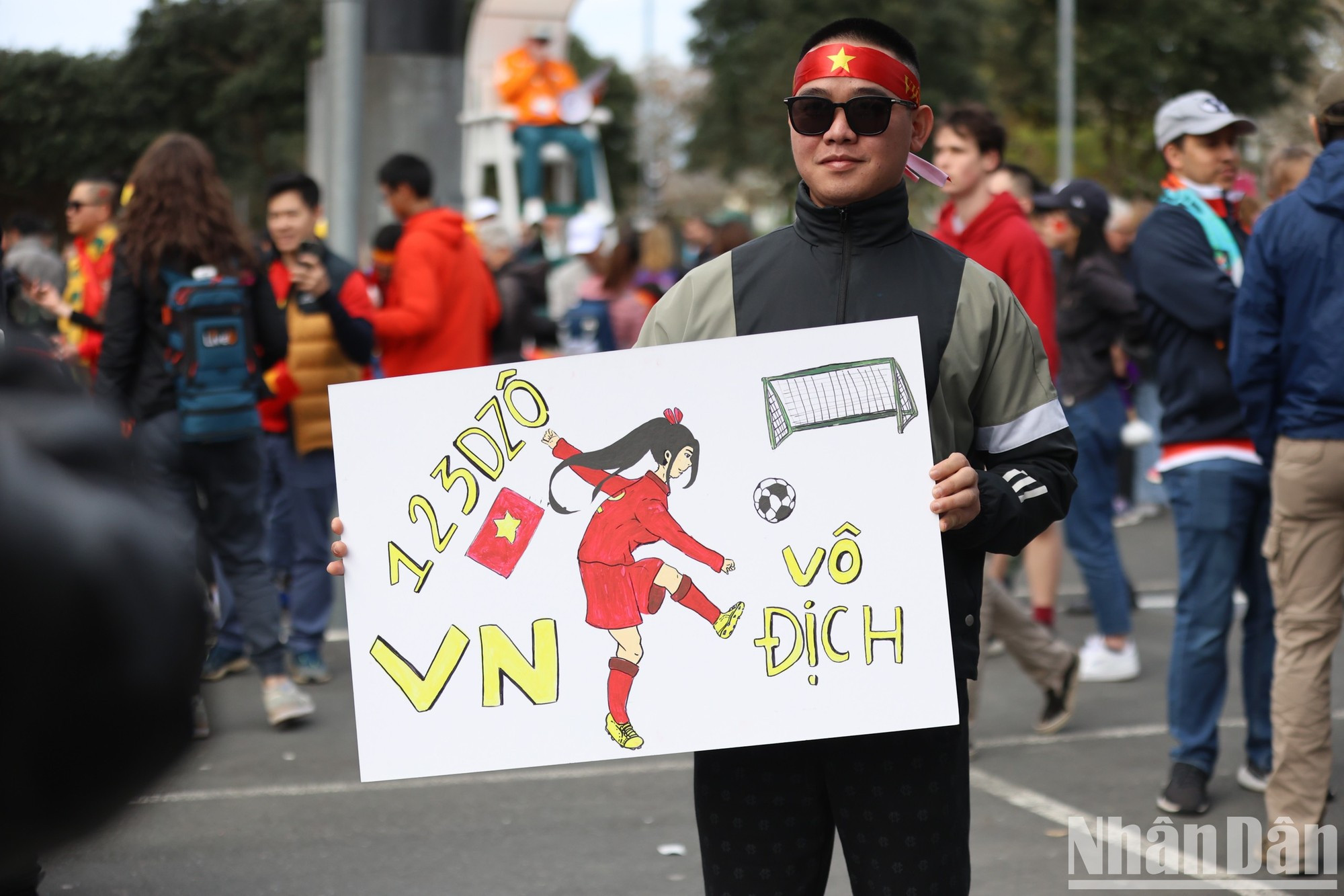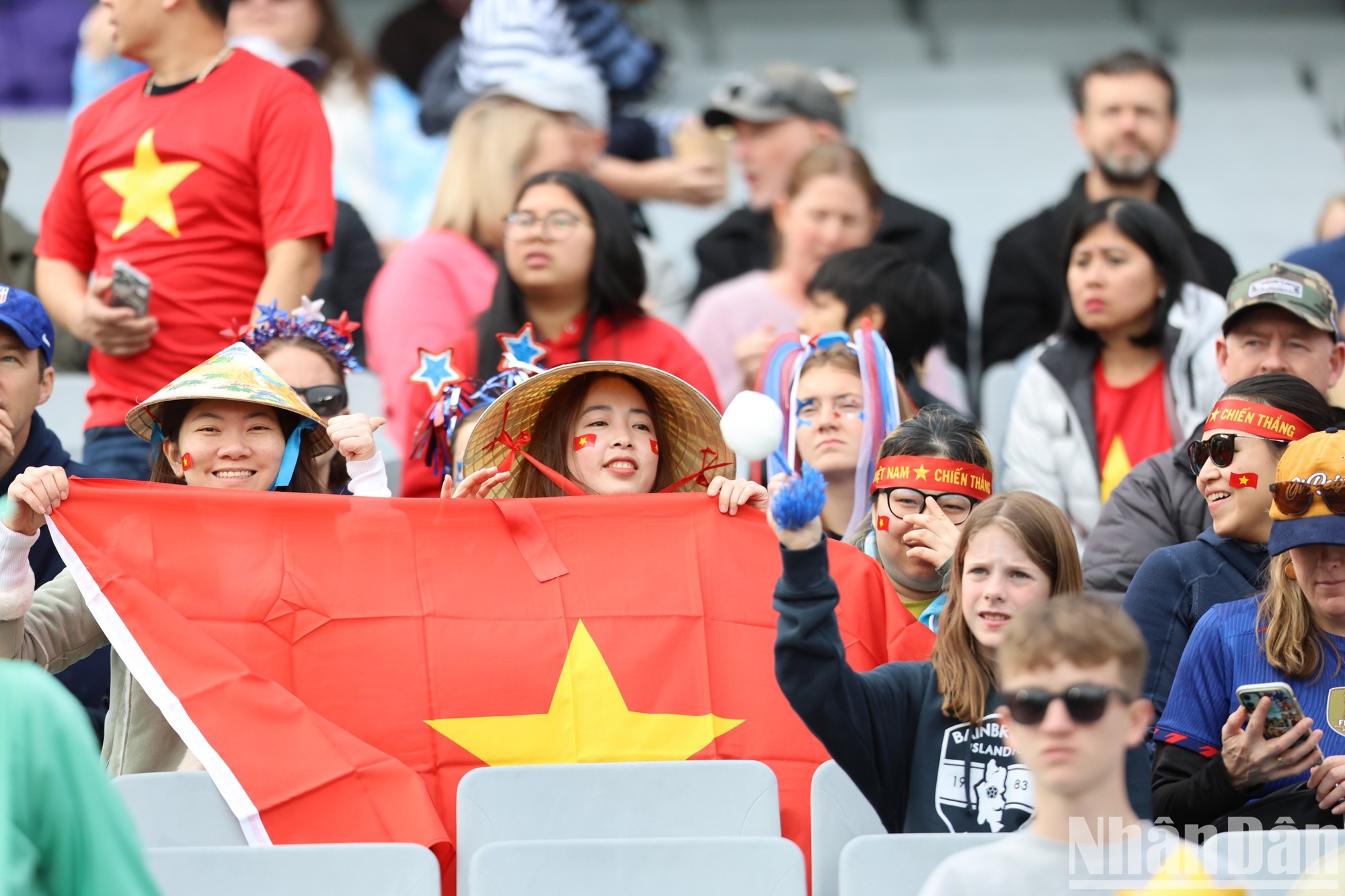 为了给越南女足迎战非常强劲的对手美国女足加油,众多球迷把熟悉的红色带到了伊甸公园球场。