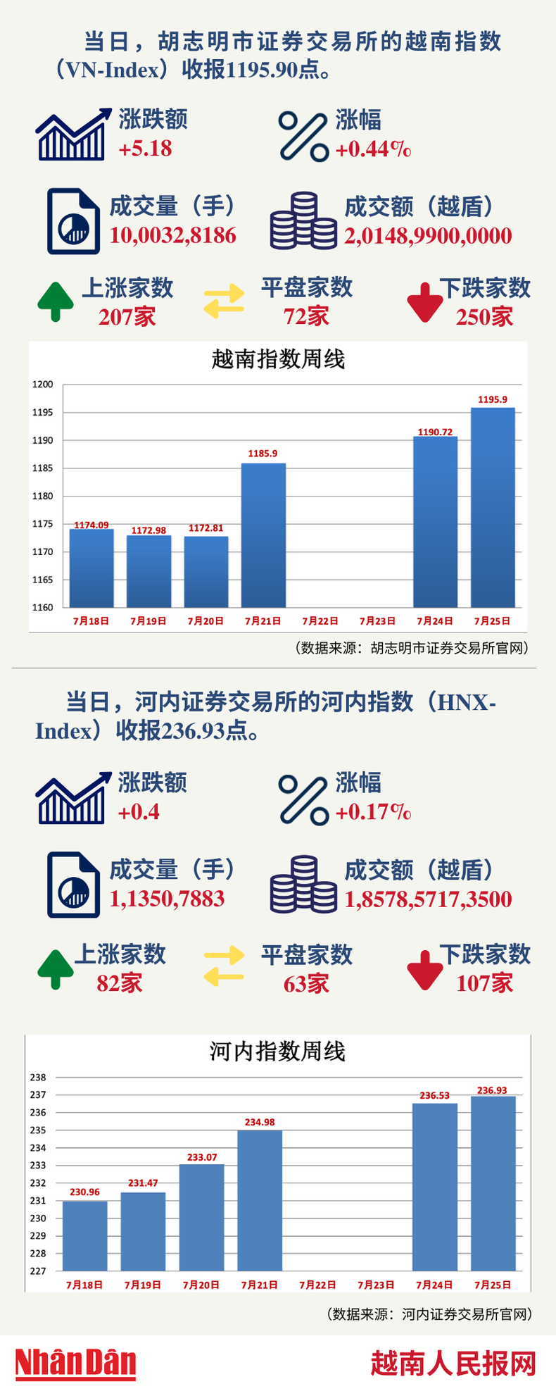 2023年7月25日越南证券市场数据一览【图表新闻】