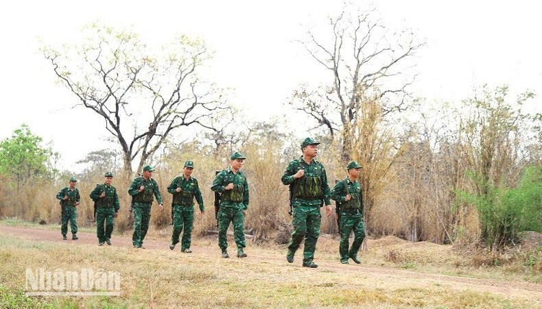 从邦美蜀市中心到边远乡村、少数民族地区、边疆地区,到处都悬挂着旗帜; 边防战士加强边境巡逻保护工作。