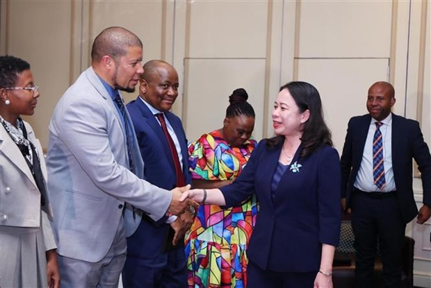 越南国家副主席武氏映春在对南非进行正式访问期间,于当地时间9月14日下午在约翰内斯堡市会见了南非执政党非洲人国民大会 (ANC)秘书长菲基莱·姆巴卢拉 (Fikile Mbalula)。