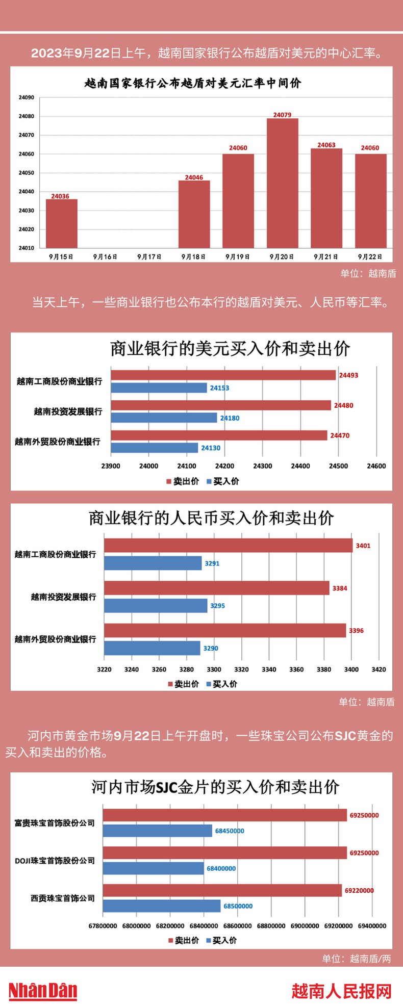 2023年9月22日上午,越南国家银行所公布的越盾对美元的中心汇率为24060。