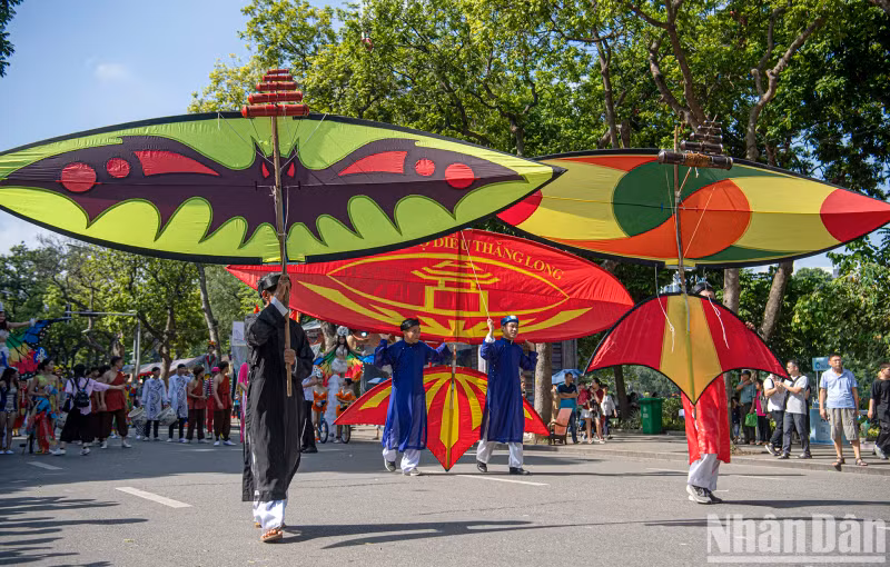 | 2023年河内秋季狂欢节由四个部分组成,主题为“绚丽灿烂的秋色”,展现出河内秋天的色彩。(成达 摄) |