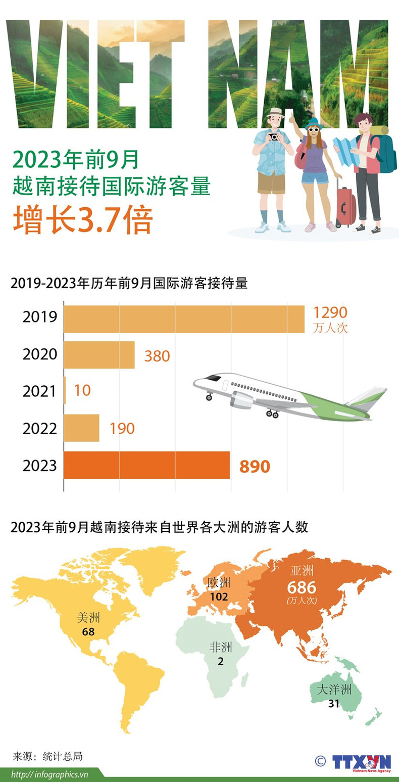2023年前9个月越南接待国际游客量增长3.7倍【图表新闻】