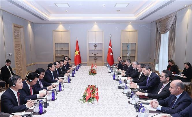 对土耳其进行正式访问期间,当地时间11月29日上午,越南政府总理范明正与土耳其副总统杰夫德特·耶尔马兹举行会谈,并取得许多重要成果。