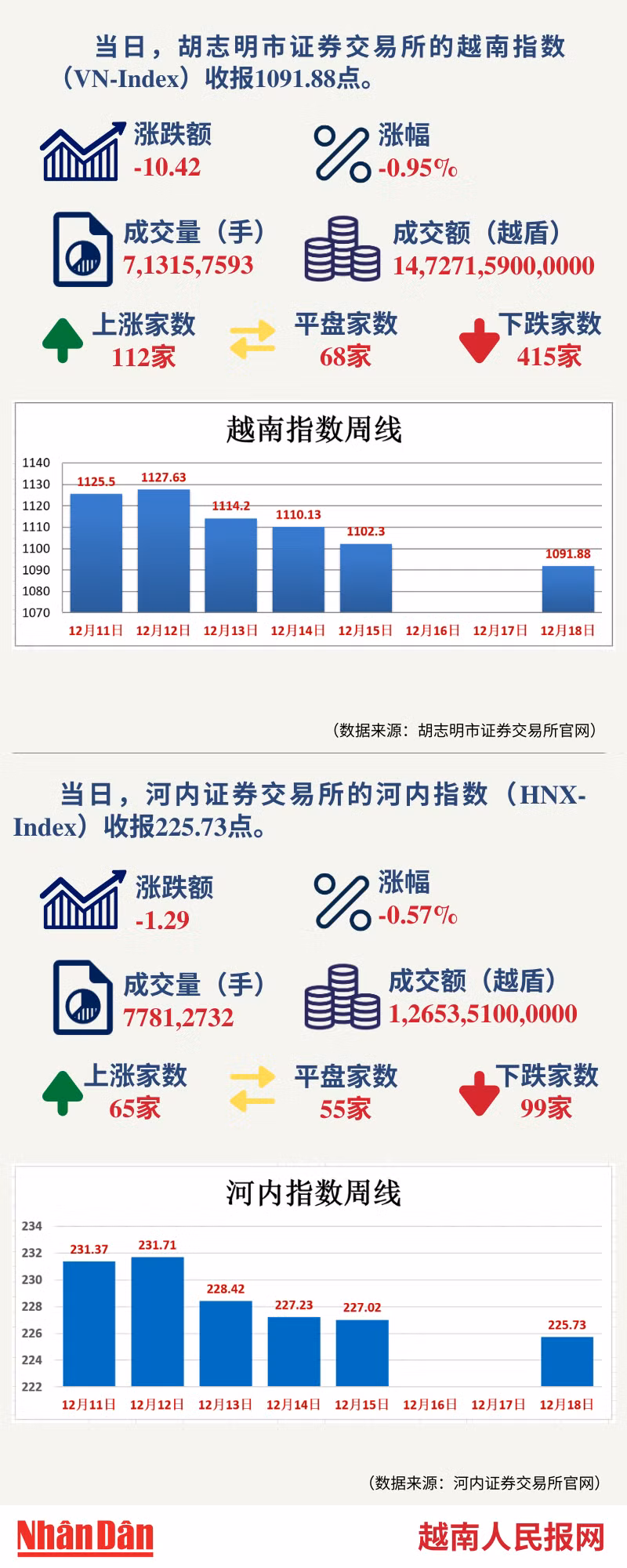 12月18日越南证券市场数据一览 【图表新闻】