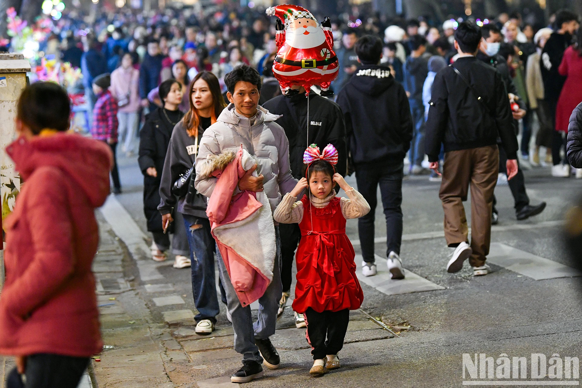 | 很多小朋友与父母一起出门感受平安夜的气氛。 |