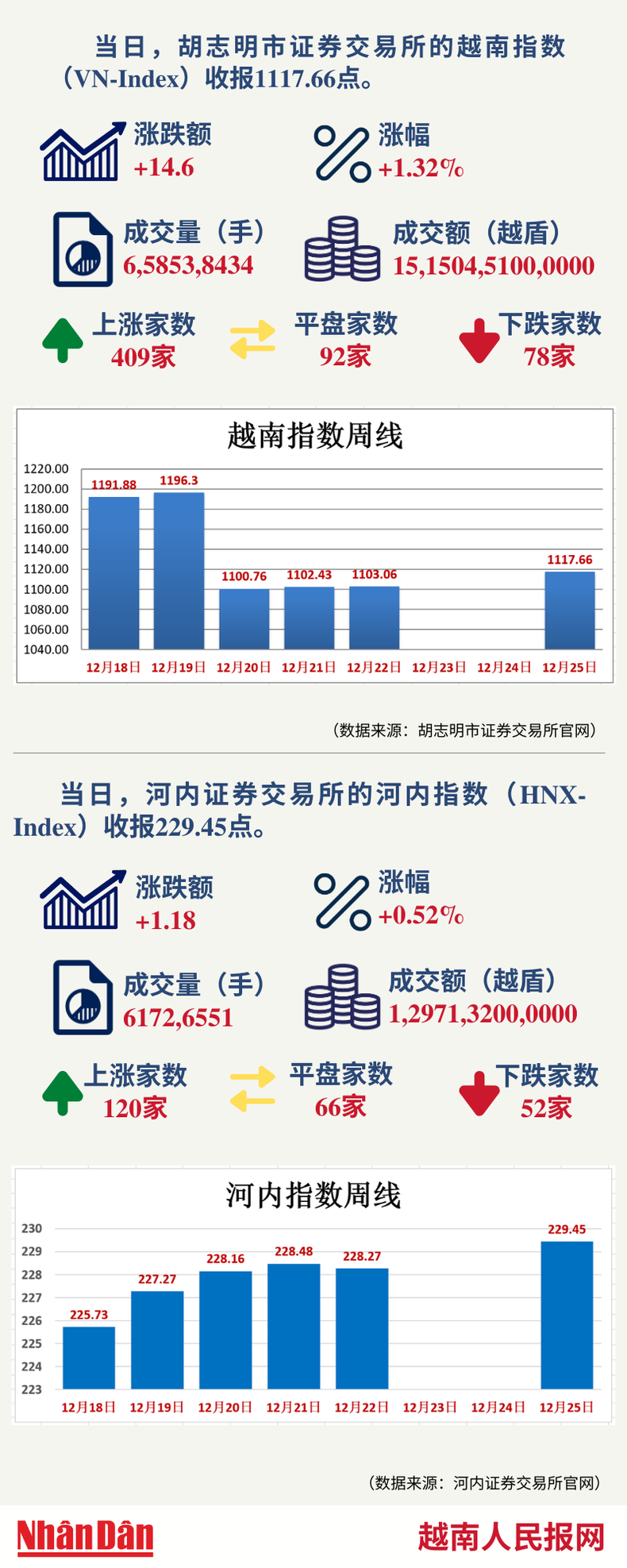 12月25日越南证券市场数据一览 【图表新闻】