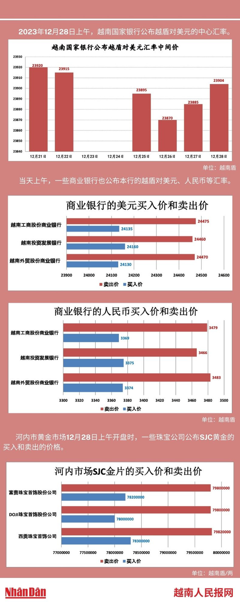 2023年12月28日上午,越南国家银行所公布的越盾对美元的中心汇率为23904。