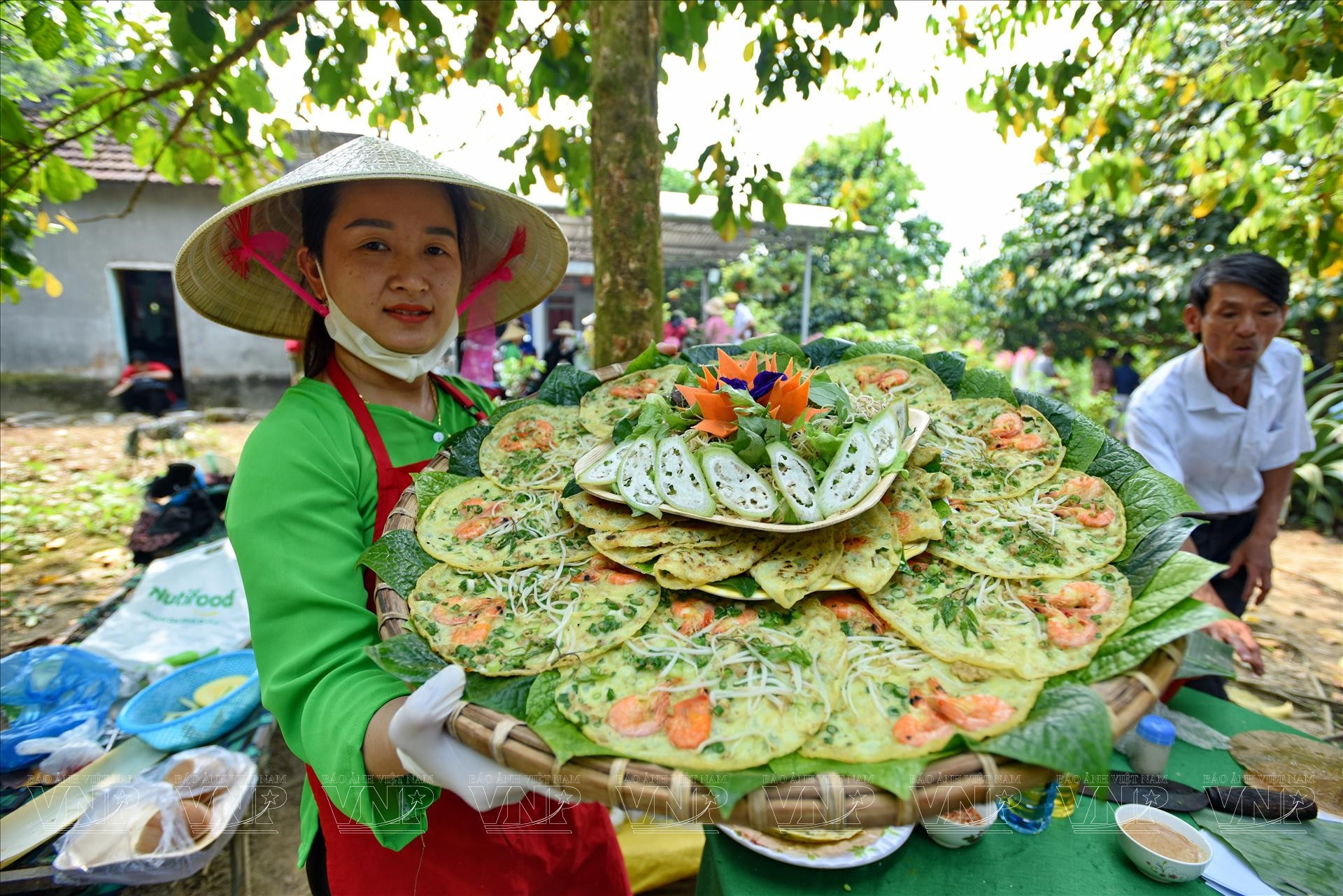 例如,米糊是用本村种植的香米加水磨成。饼馅用当地河溪盛产的小虾,虾皮蹦脆,肉质香甜、紧实,新鲜的五花肉和豆芽,加上家种的香菜、葱花、积雪草、鱼腥草、生菜、香蕉花、芥菜等,食用时蘸上用鱼露、生姜、碎花生熬制而成的蘸酱,口感特异。