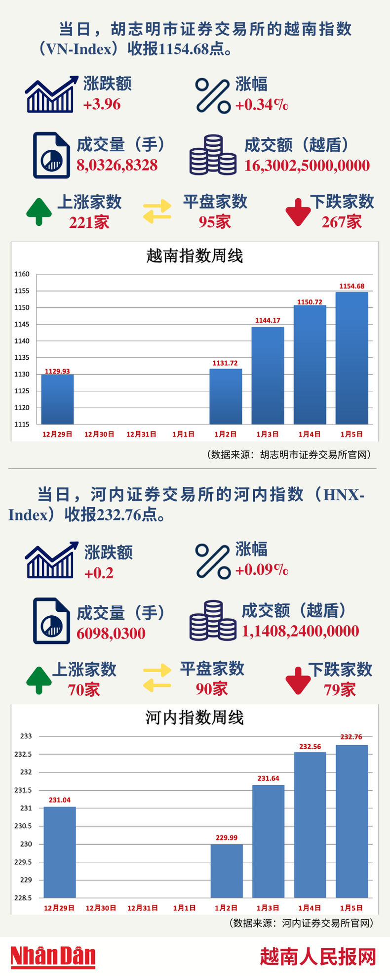 1月5日越南证券市场数据一览 【图表新闻】