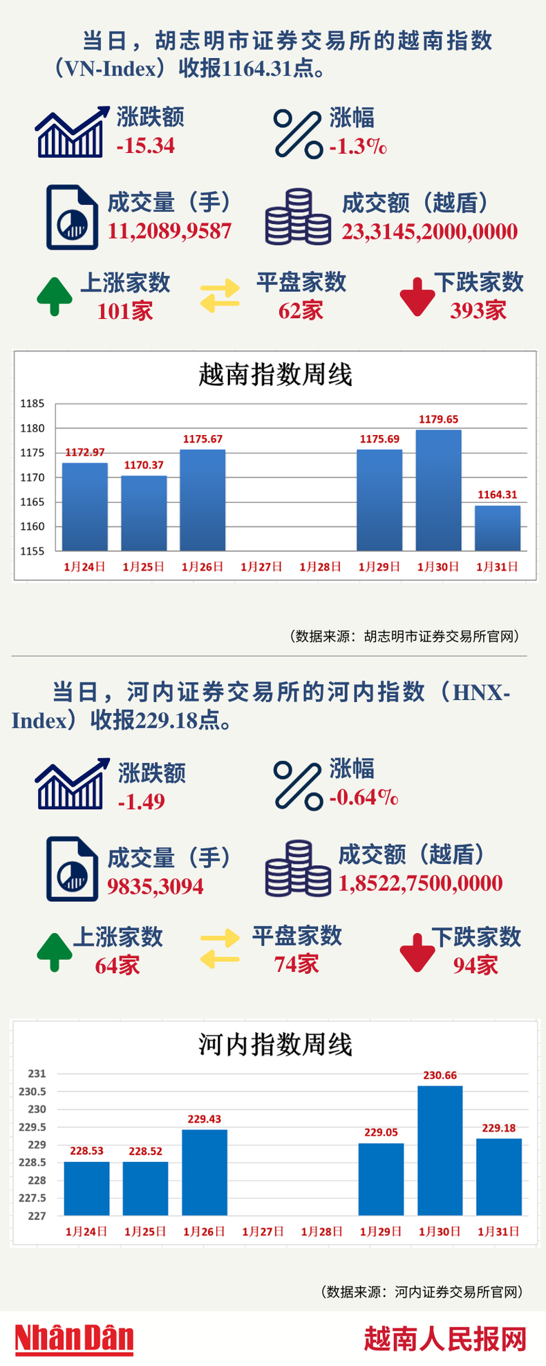 1月31日越南证券市场数据一览 【图表新闻】