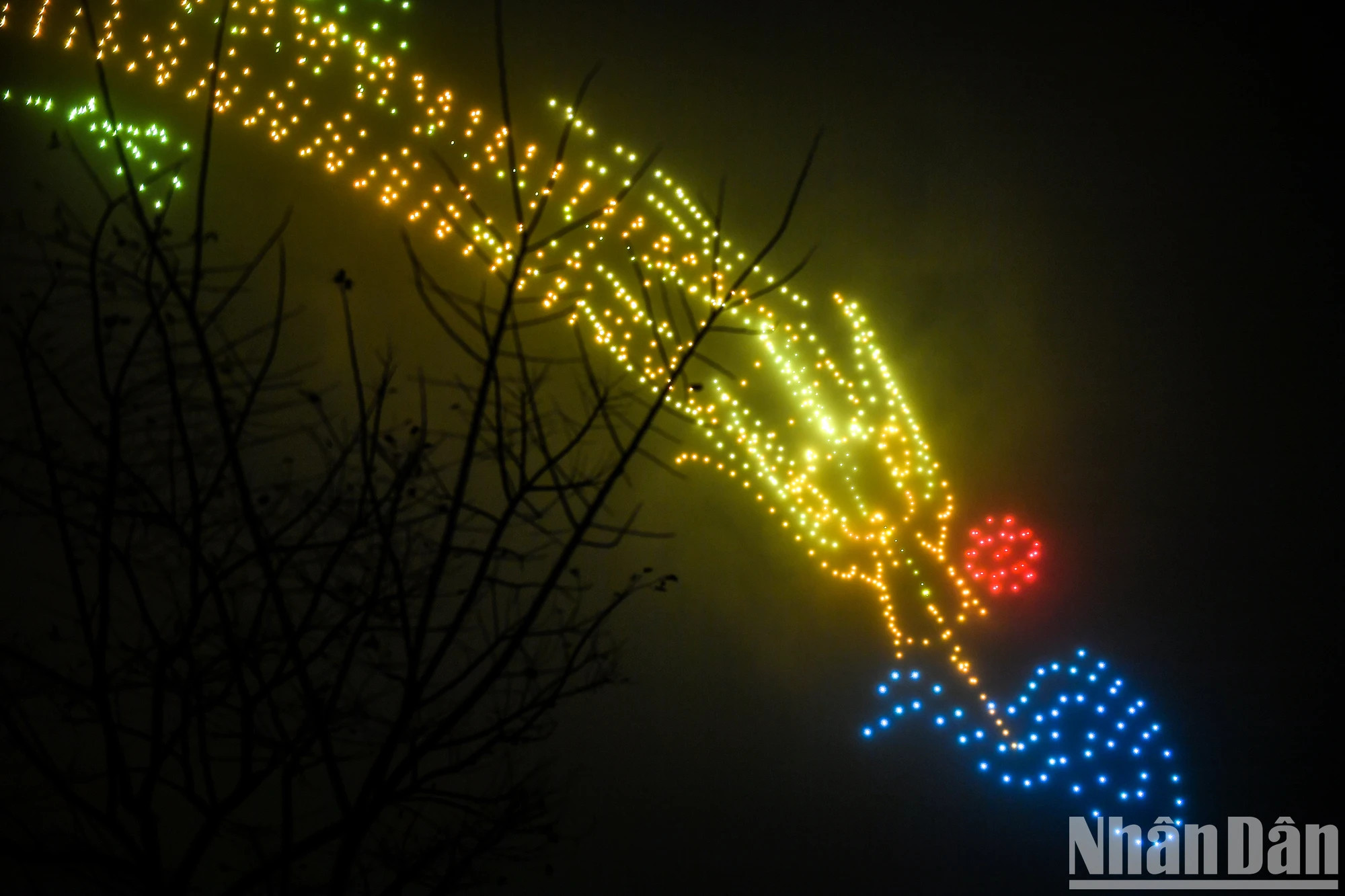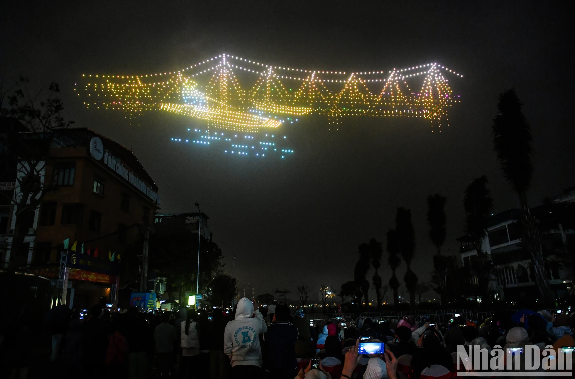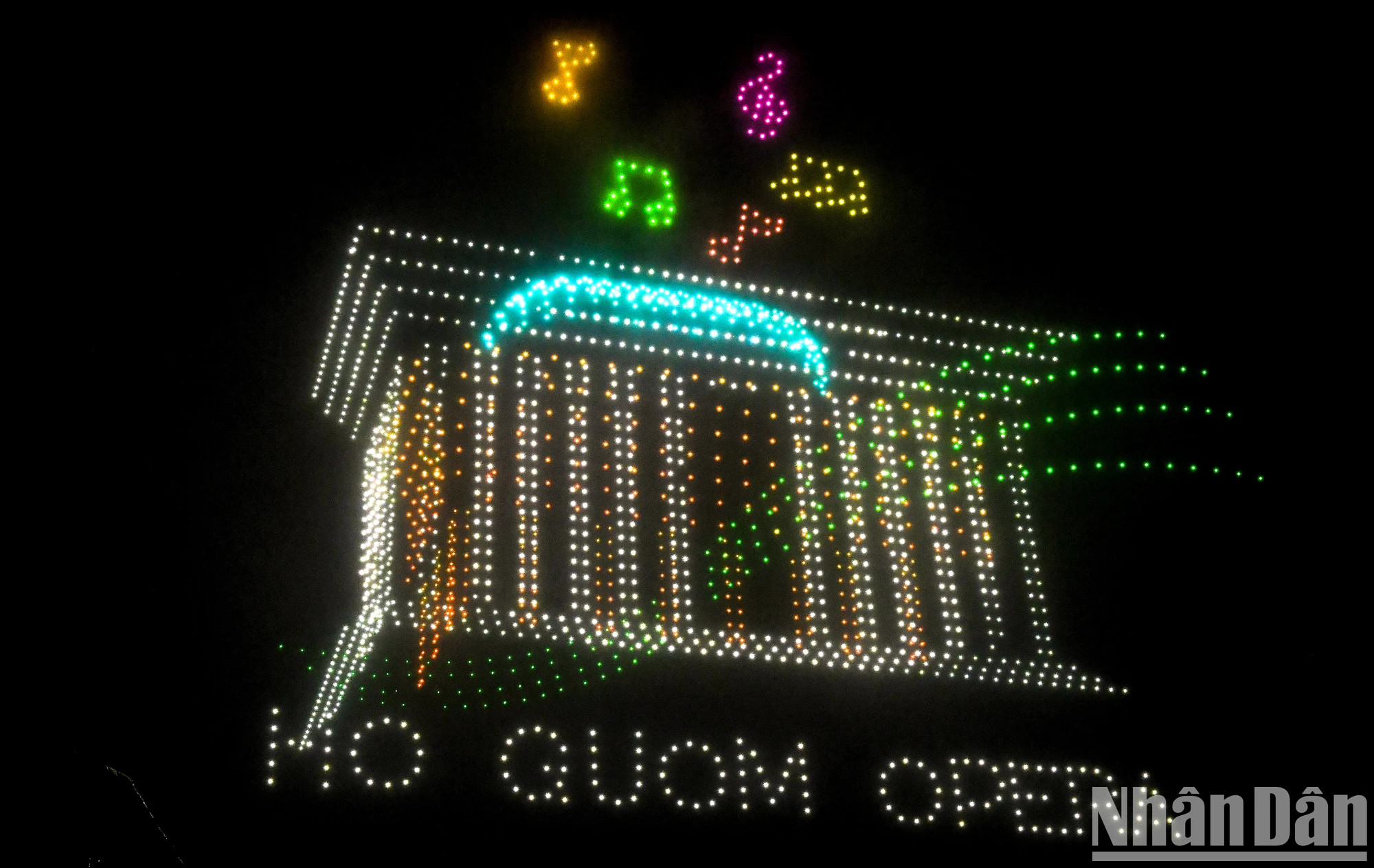 | 喜迎2024甲辰年春节,西湖郡人民委员会与越南国家油气集团、越南大众商业股份银行联合举行以“一天京城——千年历史”为主题的题为“河内艺术灯光节——灿烂升龙” 的2024架无人机艺术灯光表演秀。 |