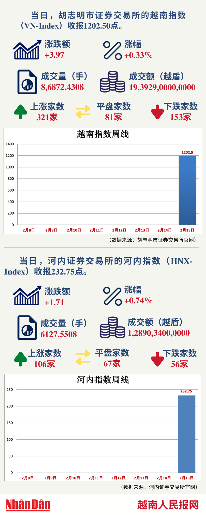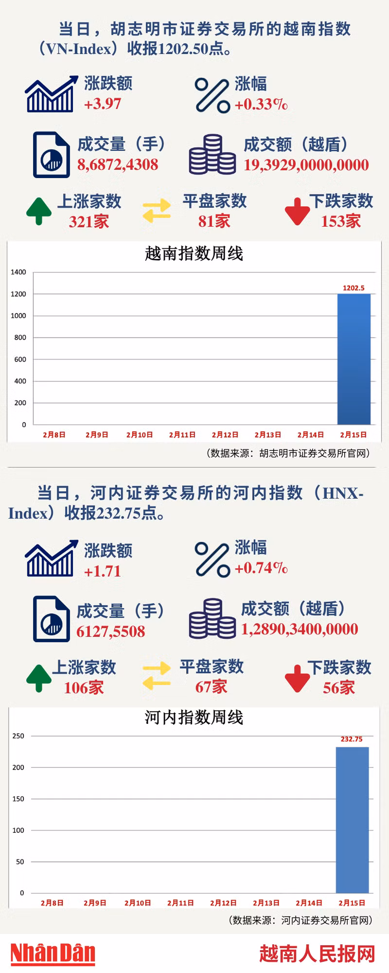2月15日越南证券市场数据一览 【图表新闻】