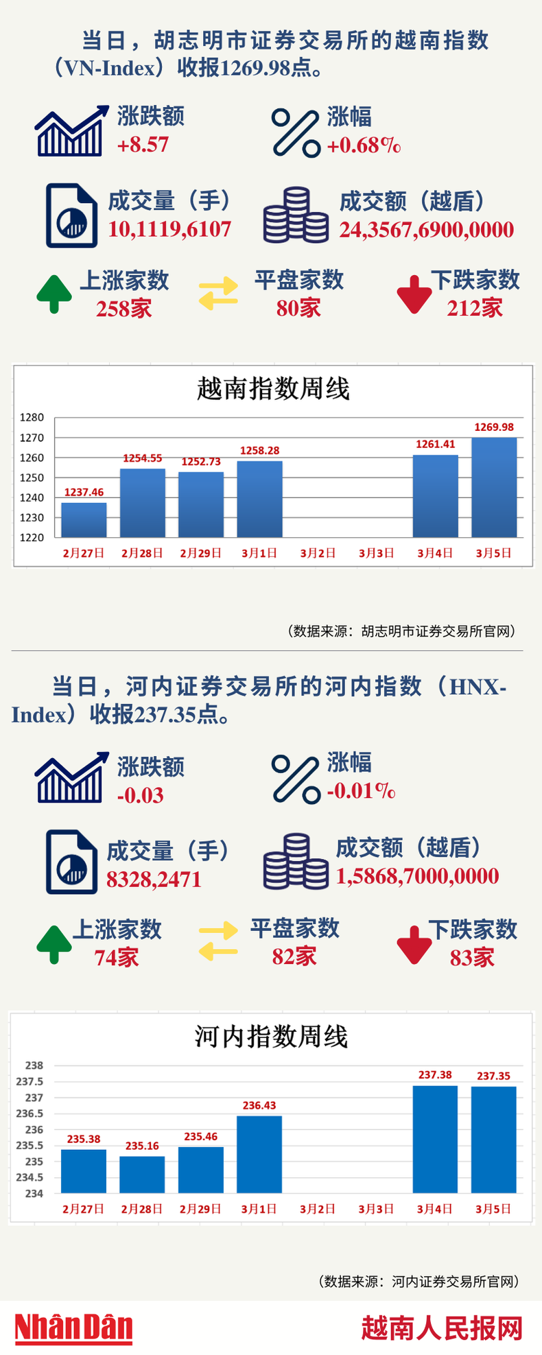 3月5日越南证券市场数据一览 【图表新闻】