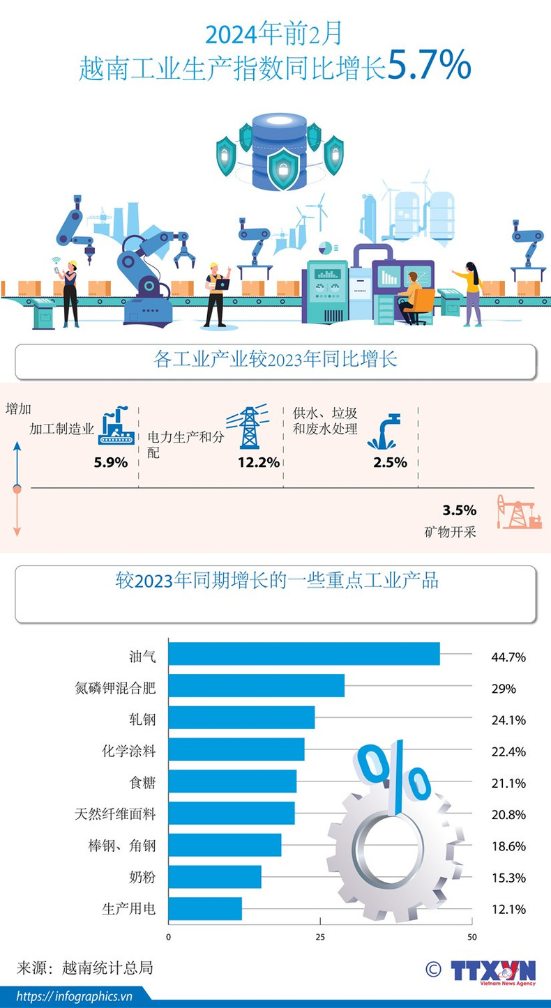 2024年前2月越南工业生产指数同比增长5.7%【图表新闻】