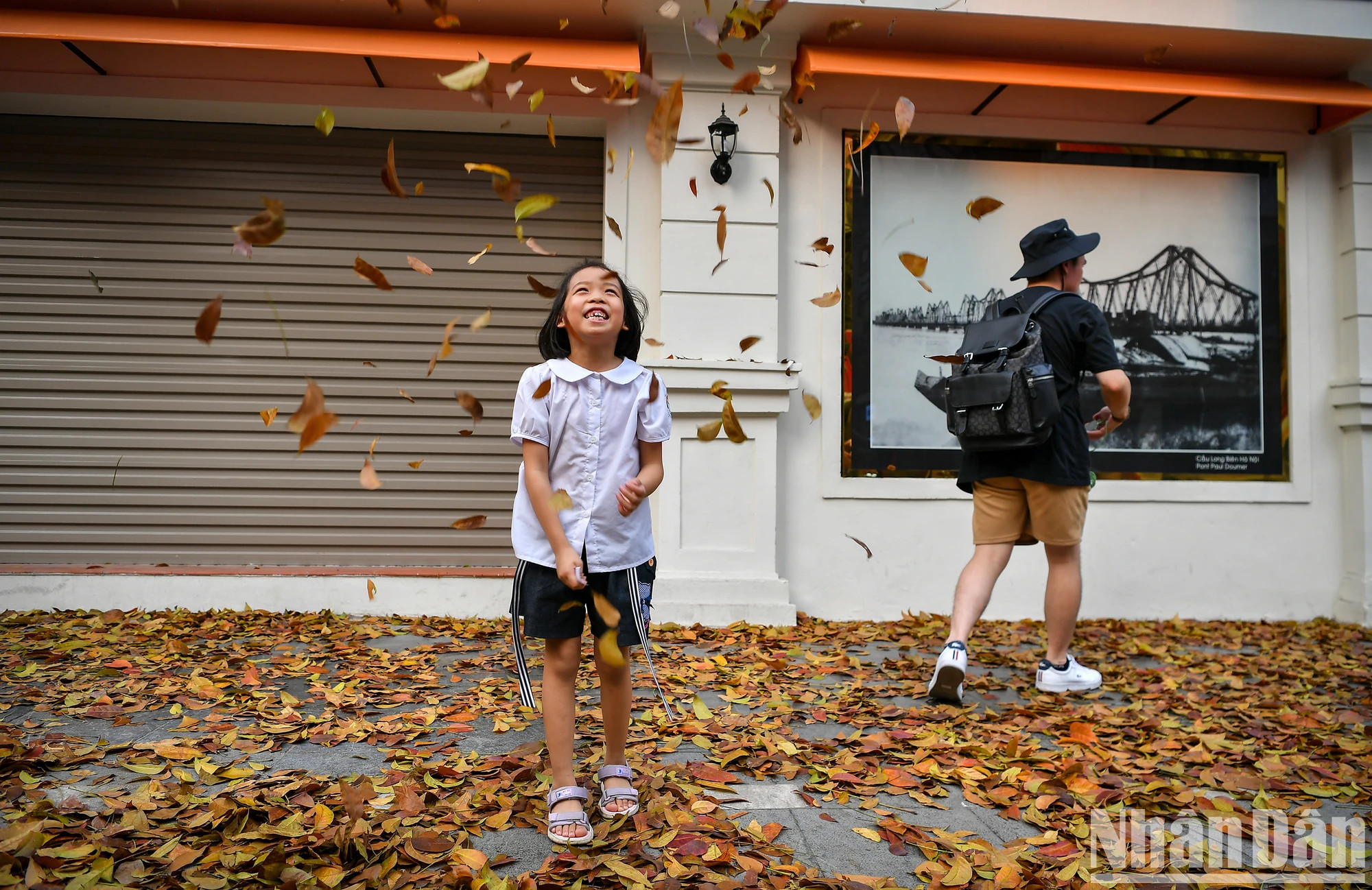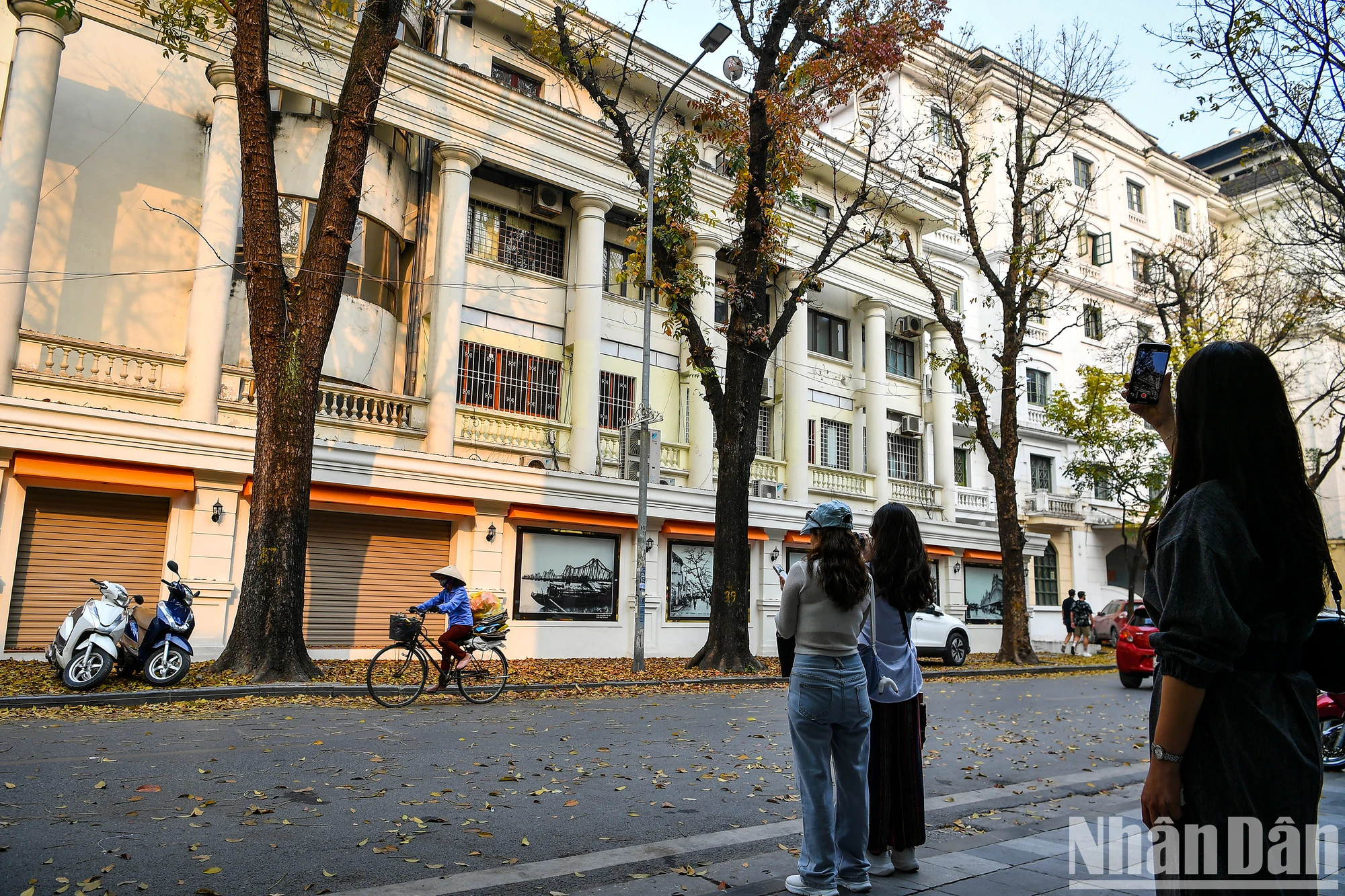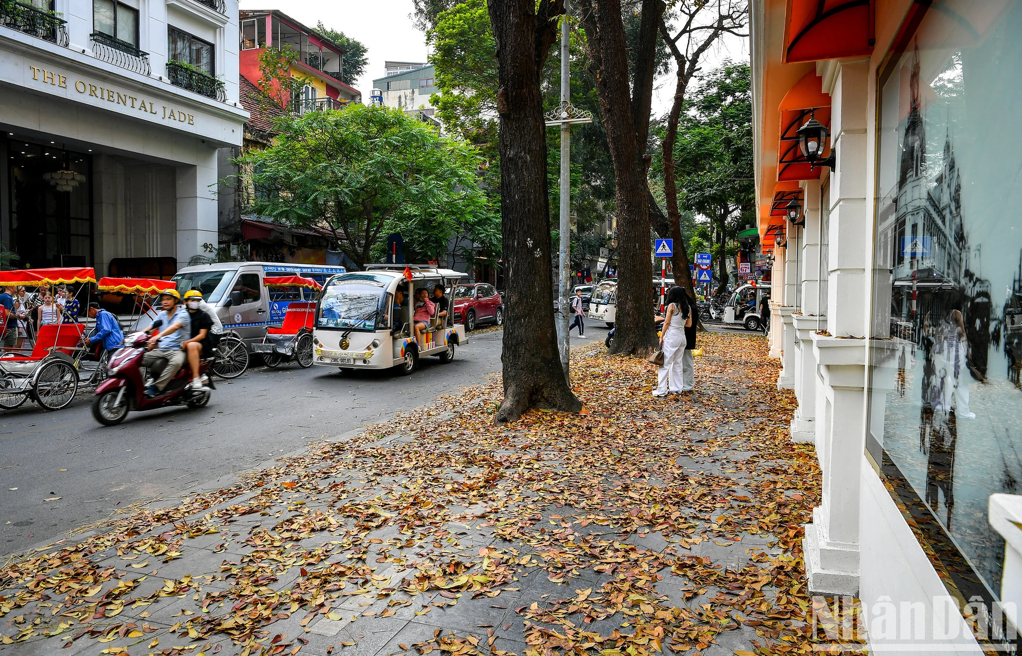 河内市一到换叶季节时就变得十分浪漫。今年,位于还剑郡鼓街的《人民报》社外的“黄叶道路”正在吸引路过的人的眼球,成为游客和首都年经人的打卡地点。