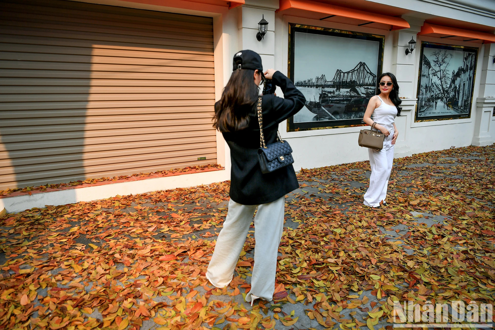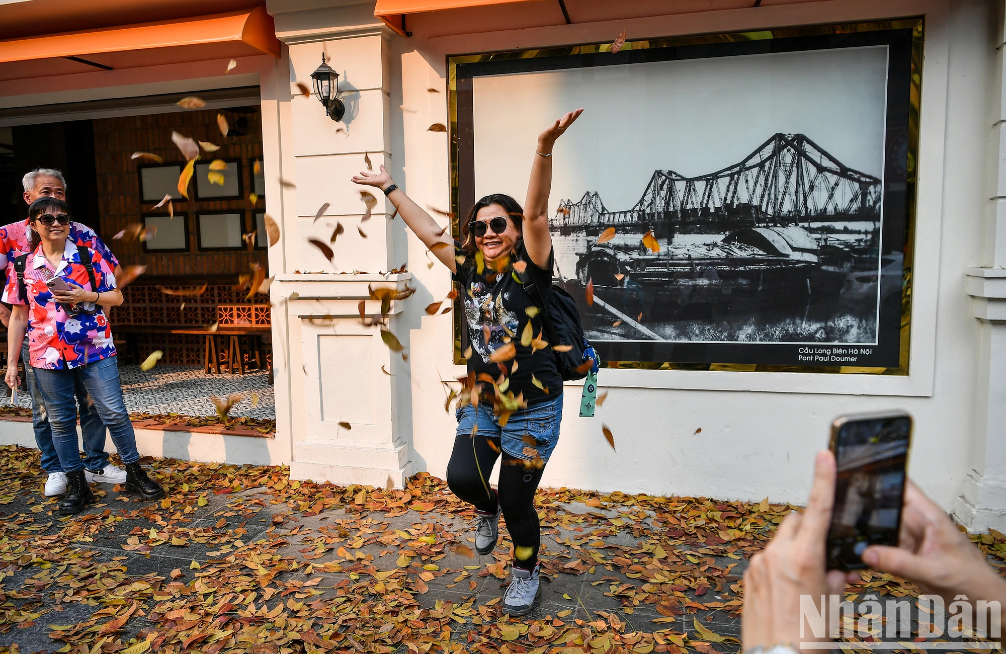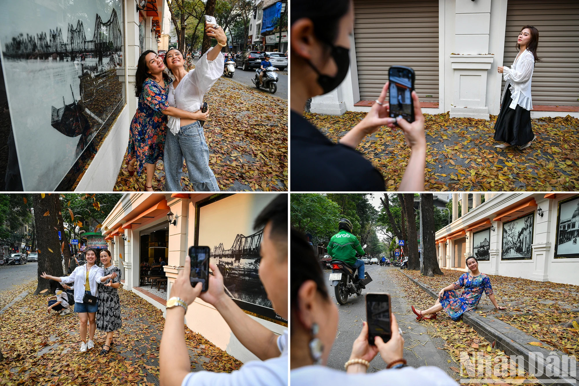 河内市一到换叶季节时就变得十分浪漫。今年,位于还剑郡鼓街的《人民报》社外的“黄叶道路”正在吸引路过的人的眼球,成为游客和首都年经人的打卡地点。