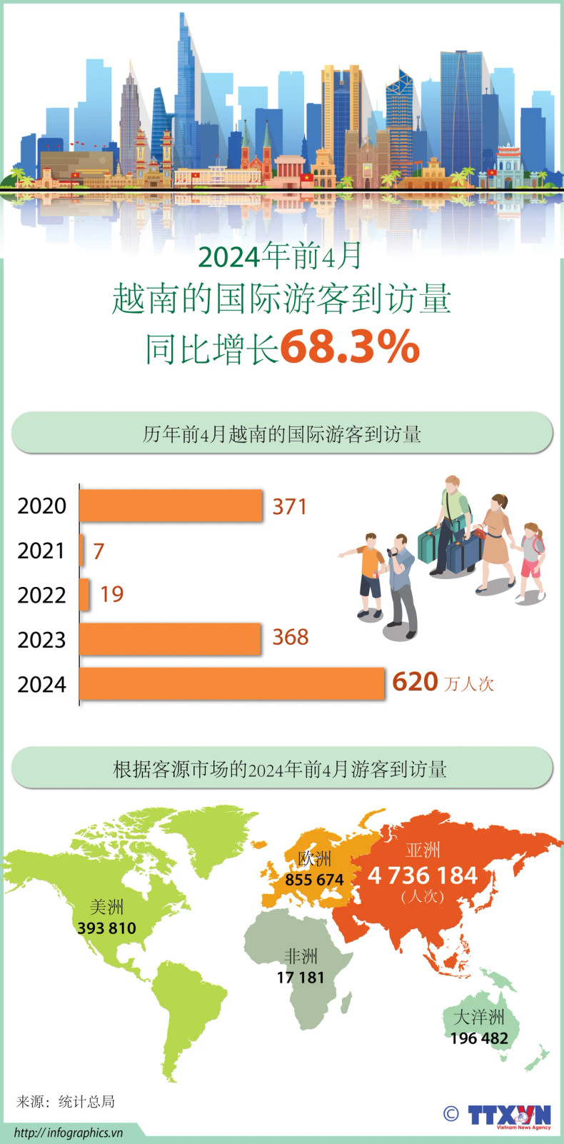 2024年前4个月越南的国际游客到访量同比增长68.3%【图表新闻】