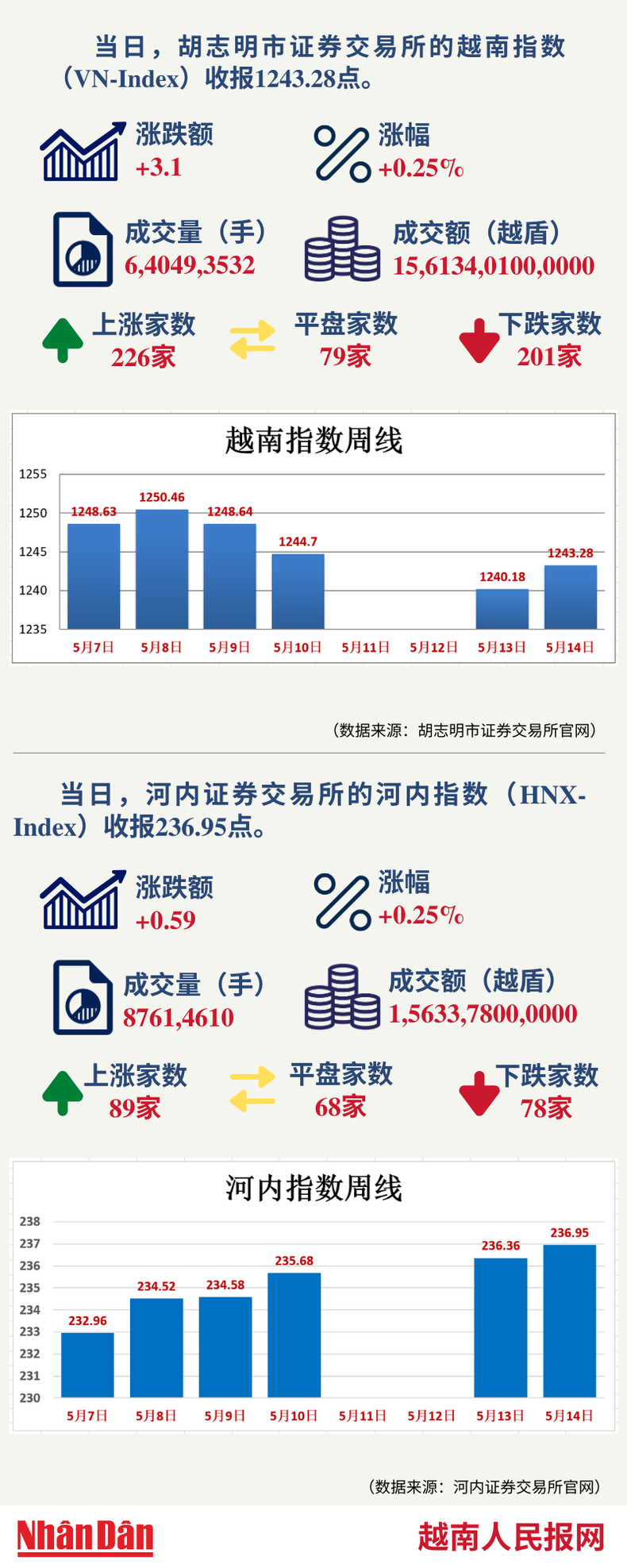 5月14日越南证券市场数据一览 【图表新闻】