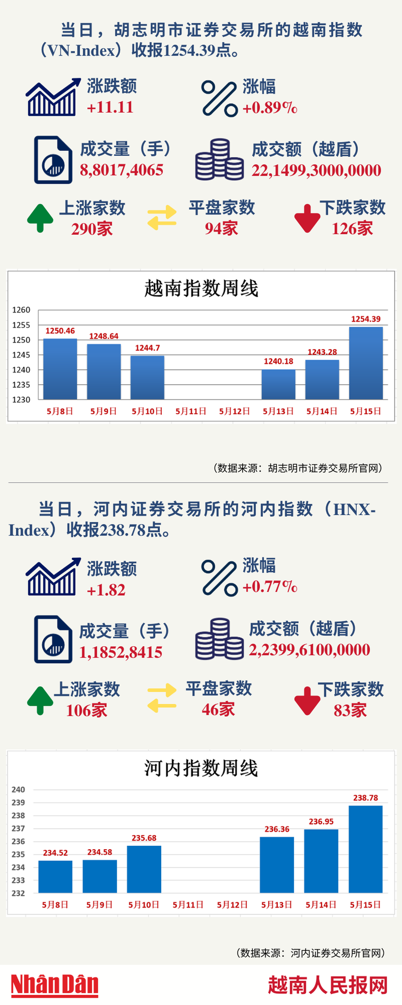 5月15日越南证券市场数据一览 【图表新闻】