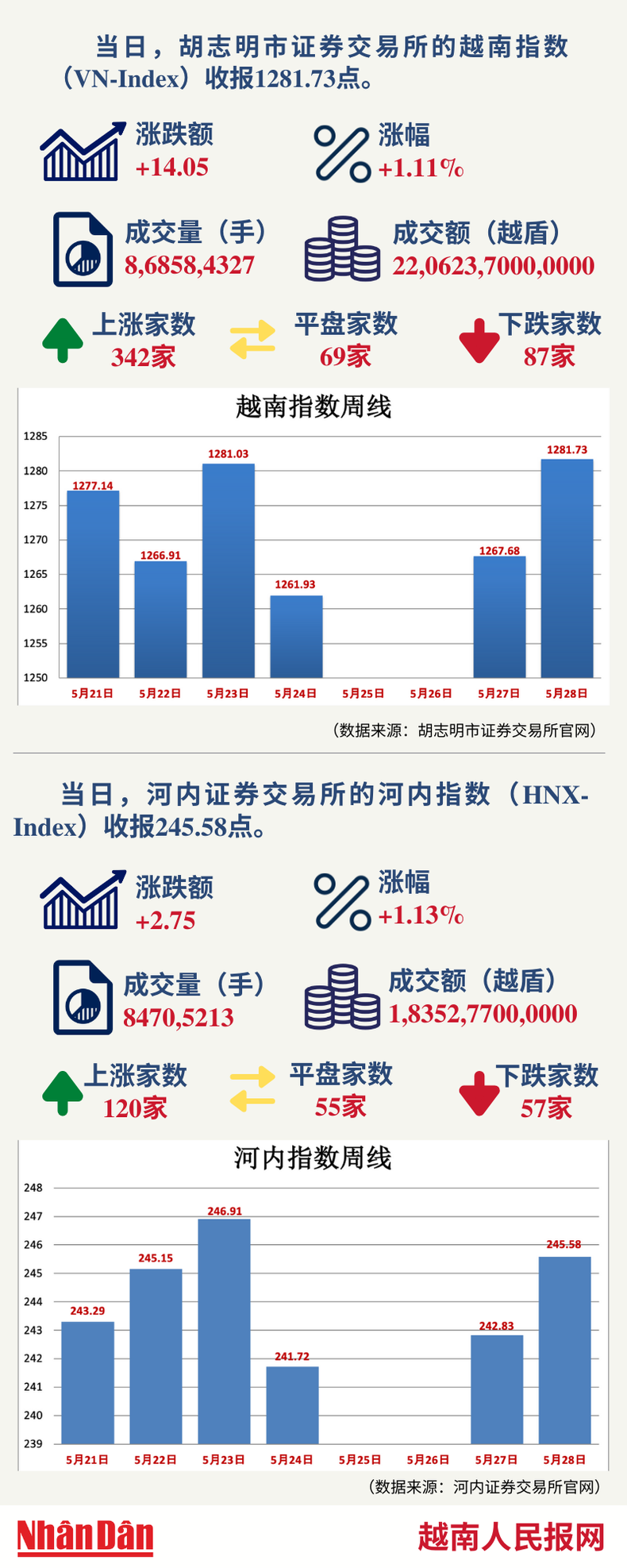5月28日越南证券市场数据一览 【图表新闻】