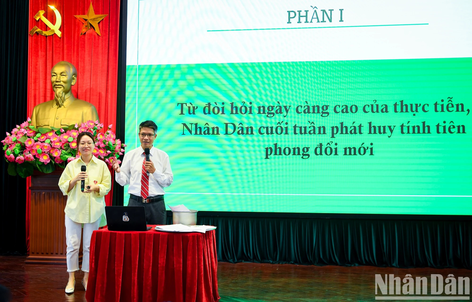 | 越共中央委员、《人民报》社总编辑、中央宣教部副部长、越南新闻工作者协会主席黎国明发表讲话。 |