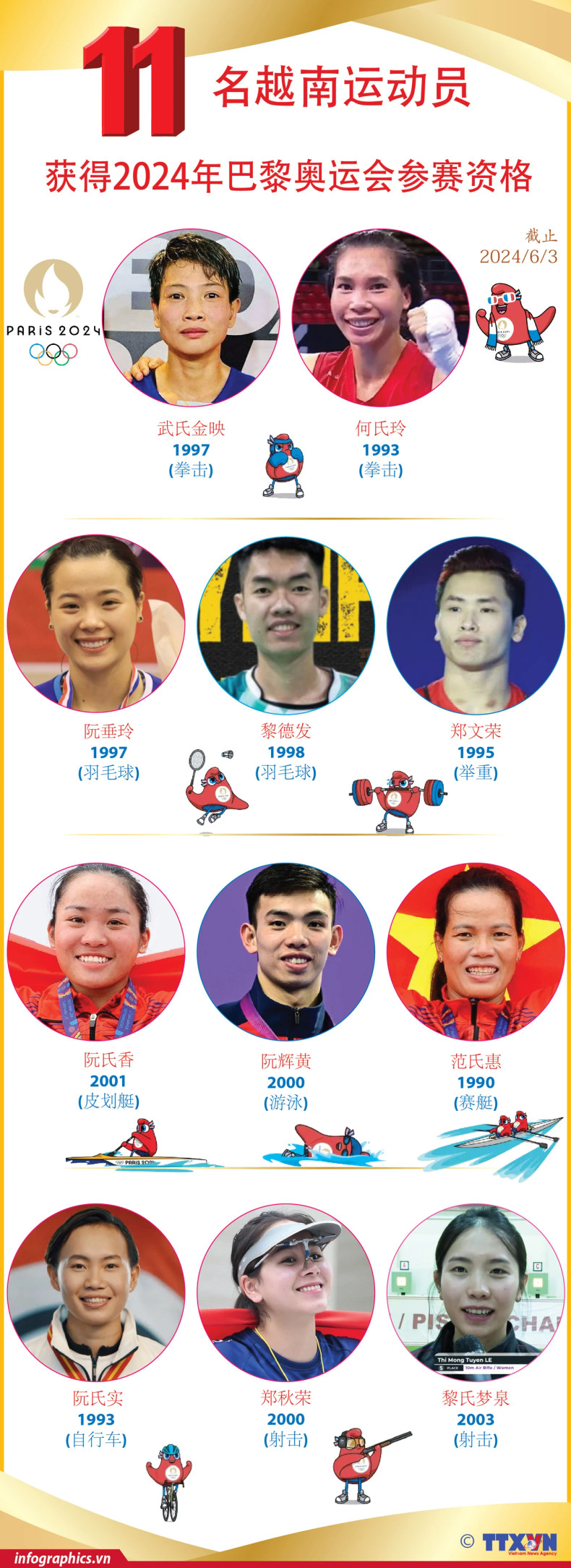 11名越南运动员获得2024年巴黎奥运会参赛资格【图表新闻】