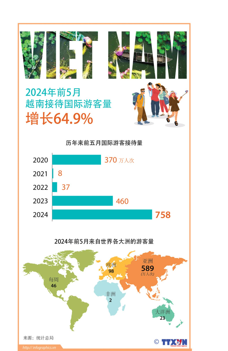 2024年前5月:越南接待国际游客增长64.9%【图表新闻】