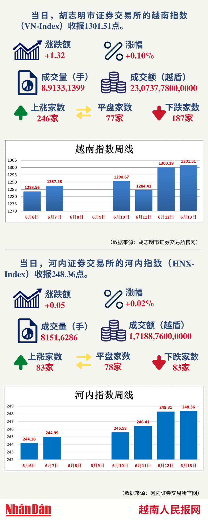 6月13日越南证券市场数据一览 【图表新闻】