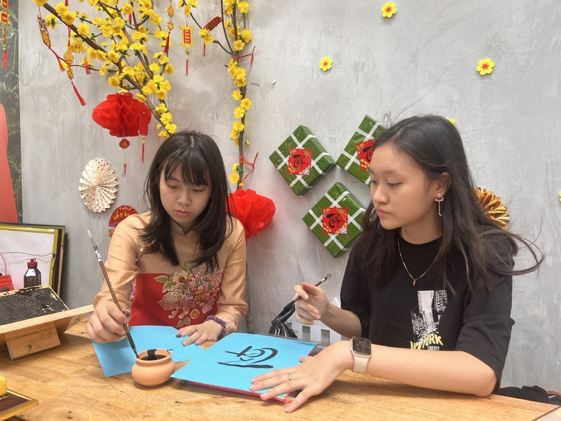 除了在家中使用越南语,阮瑞天香女士还让孩子们与其他孩子一起上越南语班。她表示,这不仅能帮助孩子们系统地学习越南语,还能为他们创造一个与同龄人交流和学习的环境。不仅如此,她还让孩子们参与她所教授的越南语班的助教工作,并了解越南书法。一段时间后,当孩子们逐渐适应,看到自己的进步,并发现自己可以帮助更小的学生学习越南语,能够与在国内的祖父母和亲戚们聊天,或者可以写越南书法时,他们感到非常兴奋。
