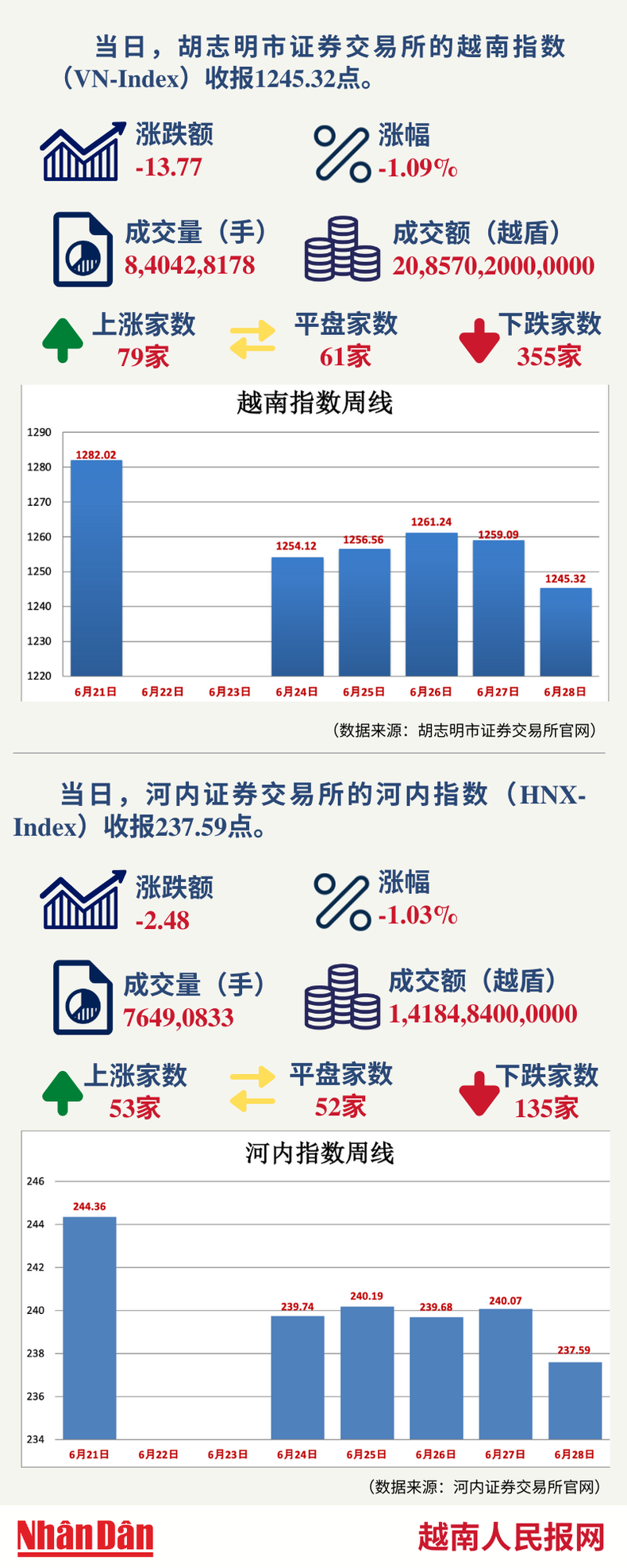 6月28日越南证券市场数据一览 【图表新闻】