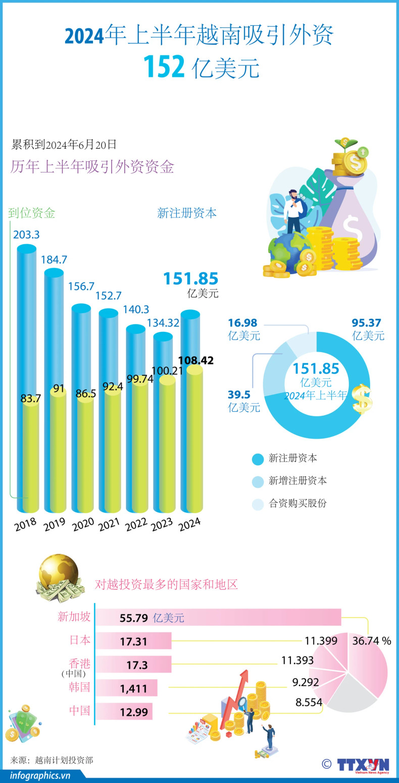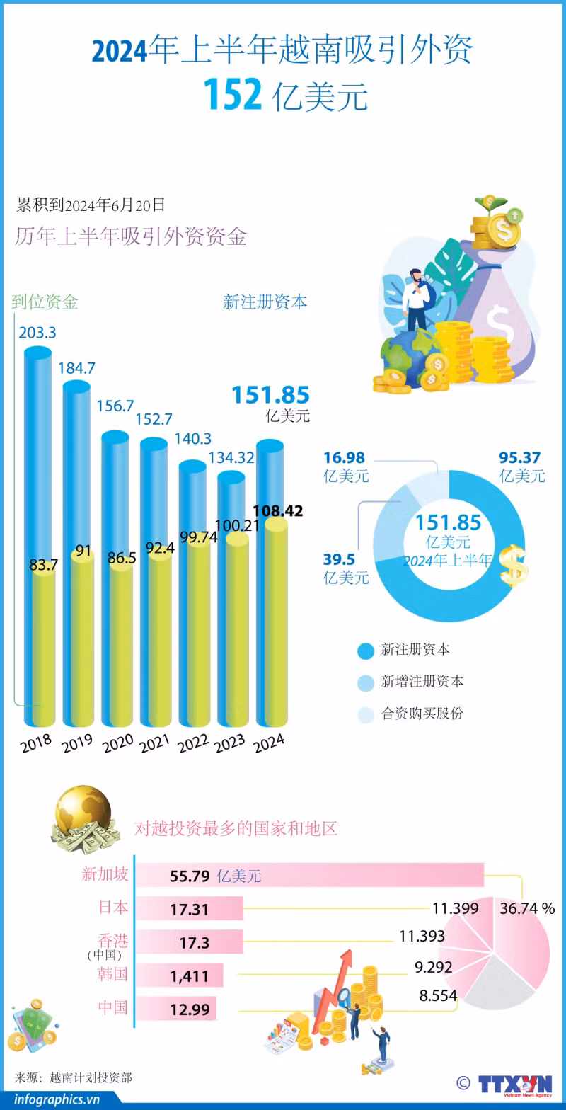 2024年上半年越南吸引外资152亿美元【图表新闻】