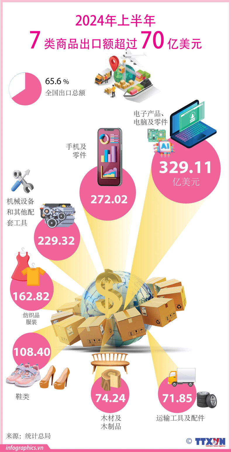 2024年上半年7类商品出口额超过70亿美元【图表新闻】