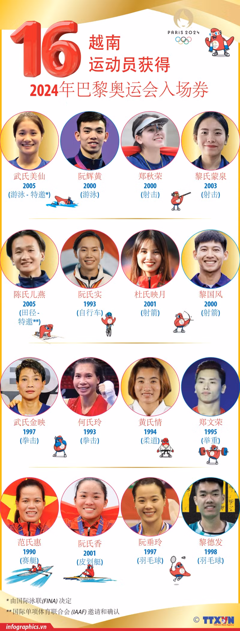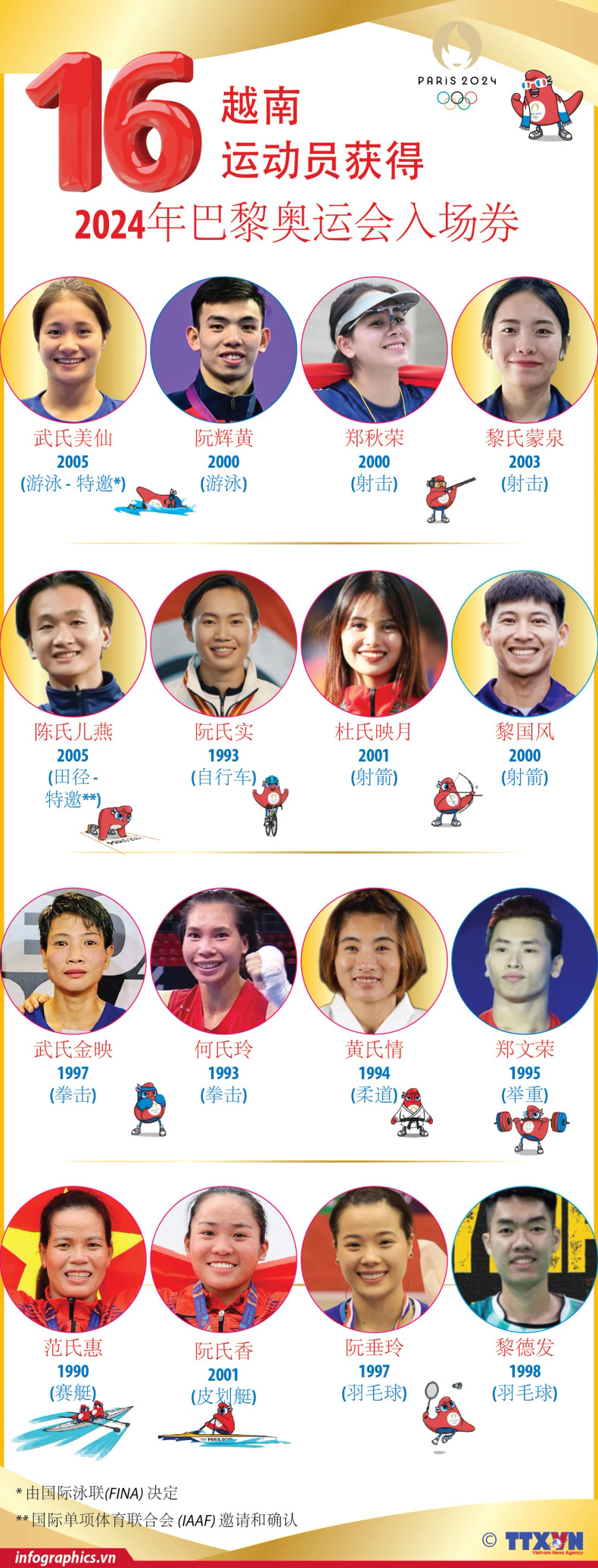 16名越南运动员获得2024年巴黎奥运会入场券【图表新闻】