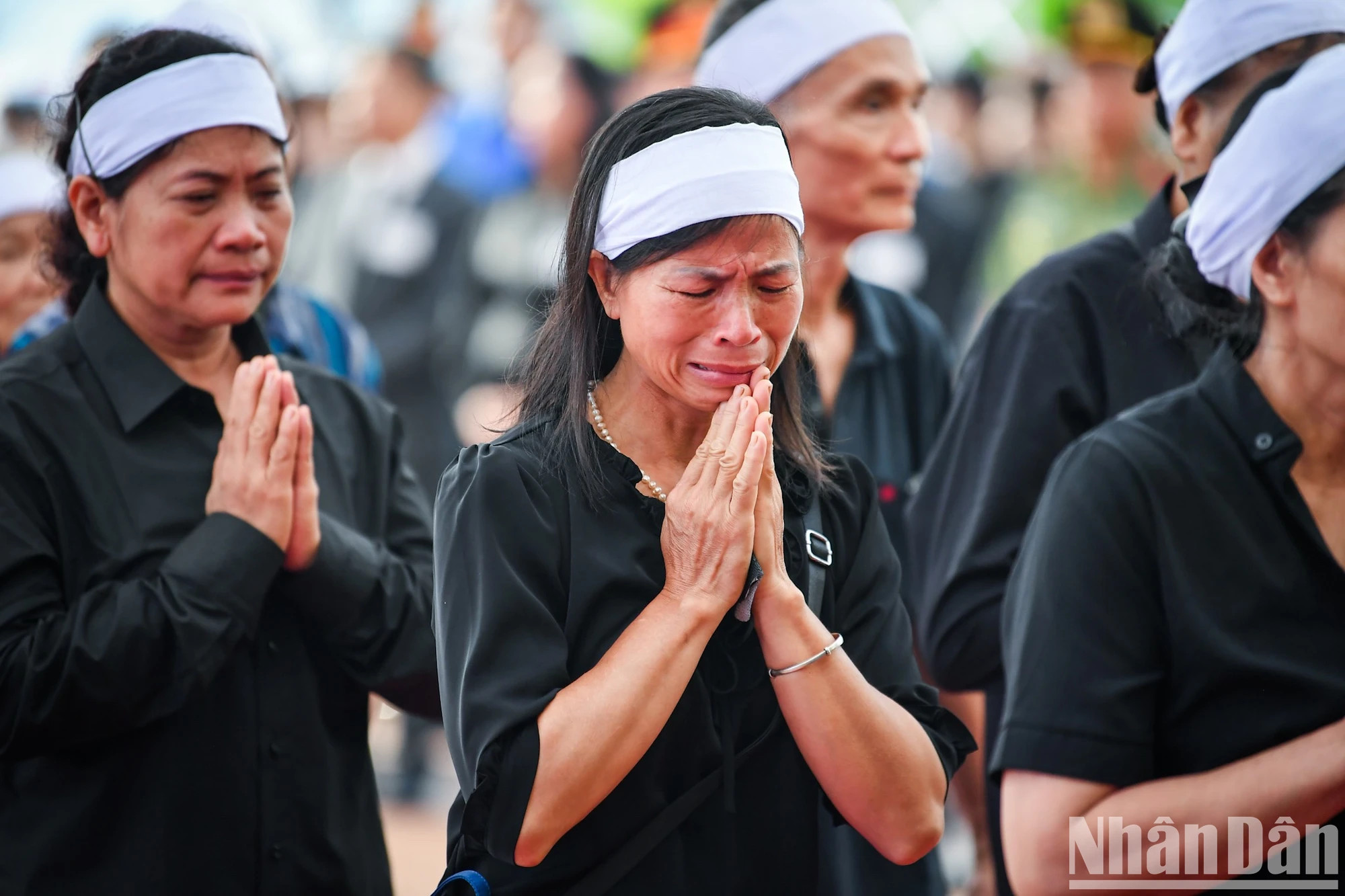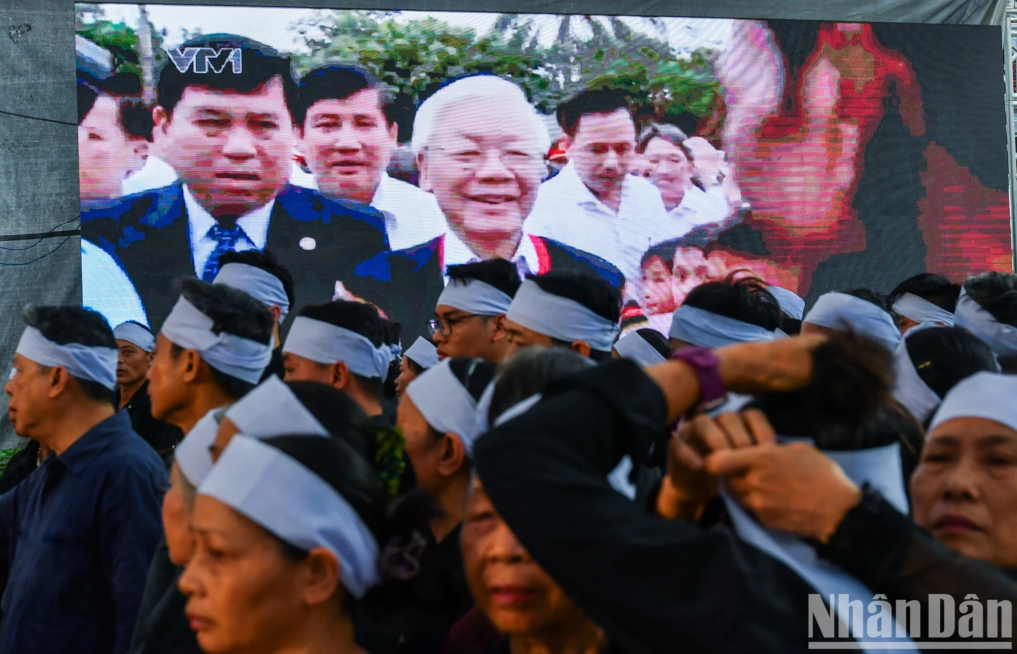7月25日上午,越共中央总书记阮富仲吊唁仪式在河内市东英县东会乡赖沱村举行,数万群众排成长龙吊唁。