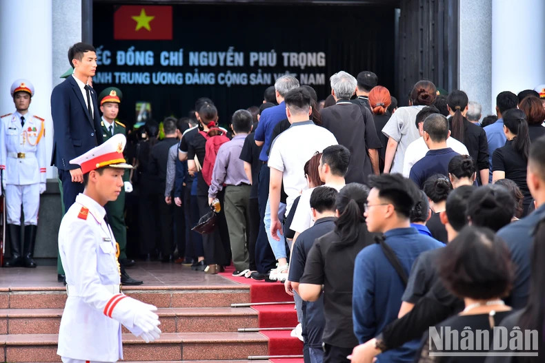 | 7月26日上午,人民群众在国家殡仪馆排成长队吊唁越共中央总书记逝世。 |
