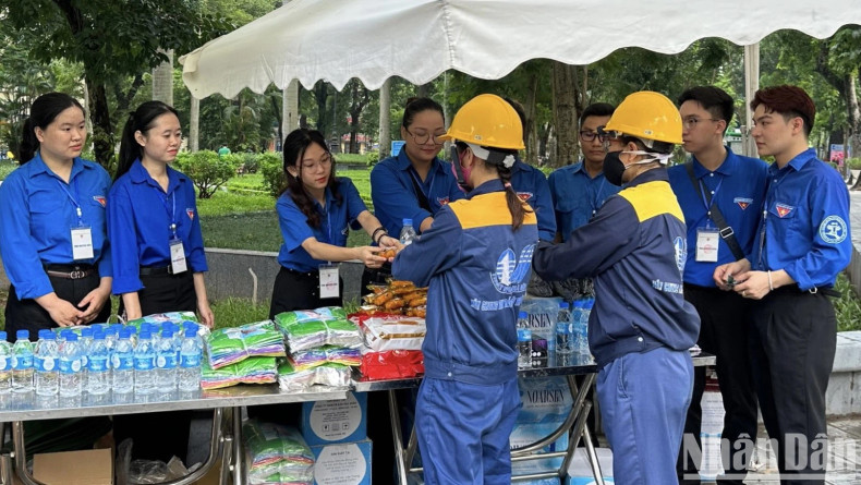 | 青年自愿者在越共中央总书记阮富仲家乡服务。 |