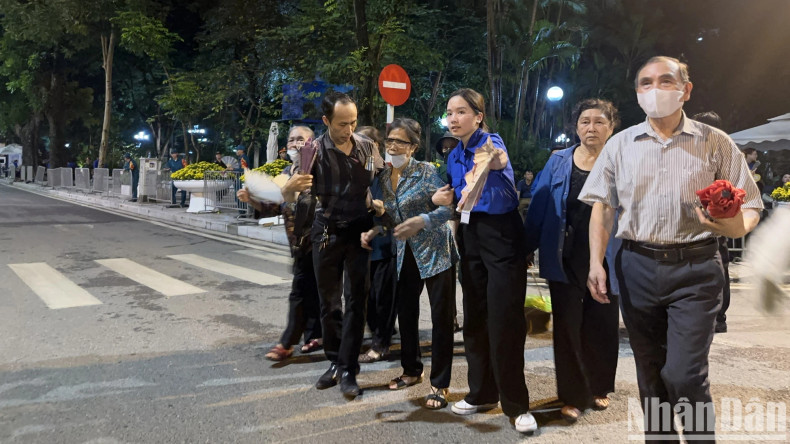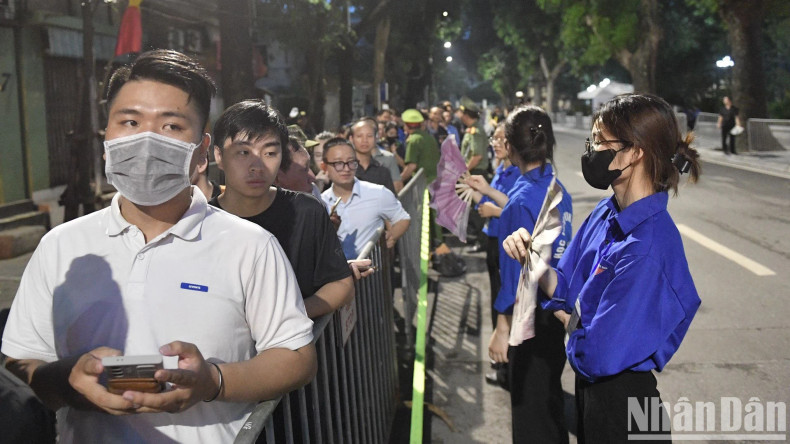 无论晴天、雨天还是深夜,数千名青年自愿者为阮富仲总书记国葬服务。
