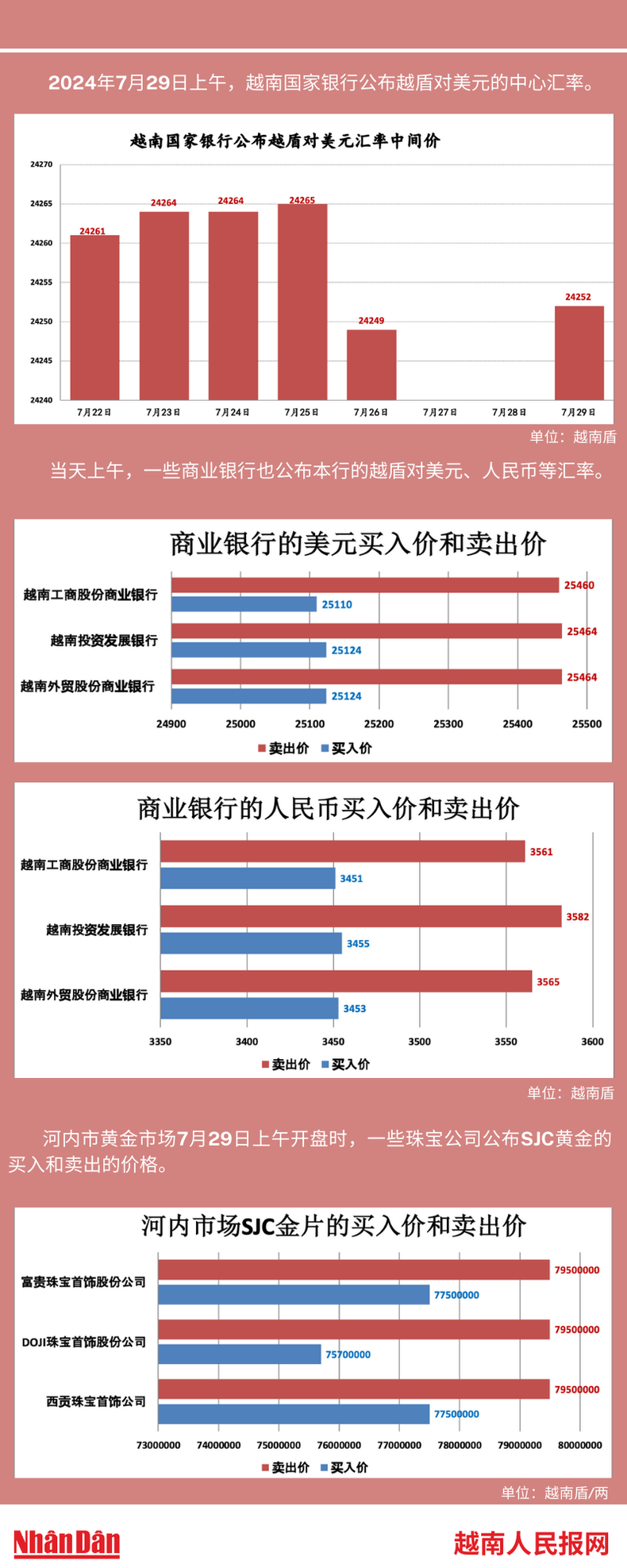 2024年7月29日上午,越南国家银行所公布的越盾对美元的中心汇率为24252。