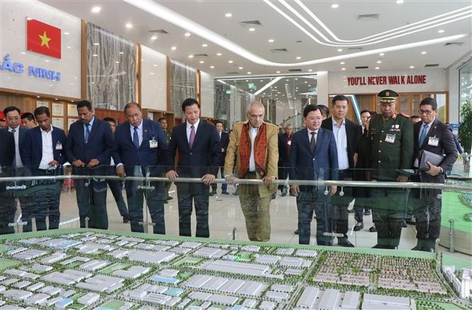东帝汶总统若泽·拉莫斯·奥尔塔一行参观北宁省越新工业园区模型。