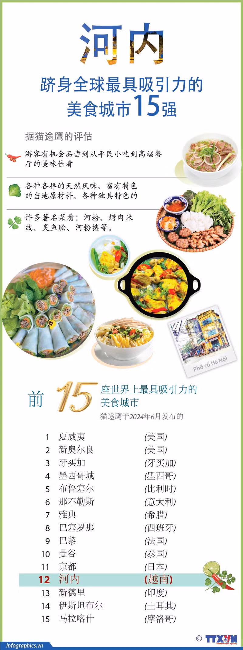 河内跻身全球最具吸引力的美食城市15强【图表新闻】